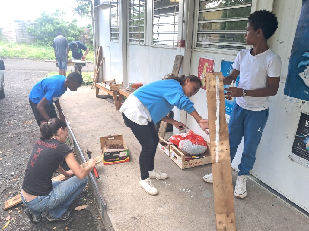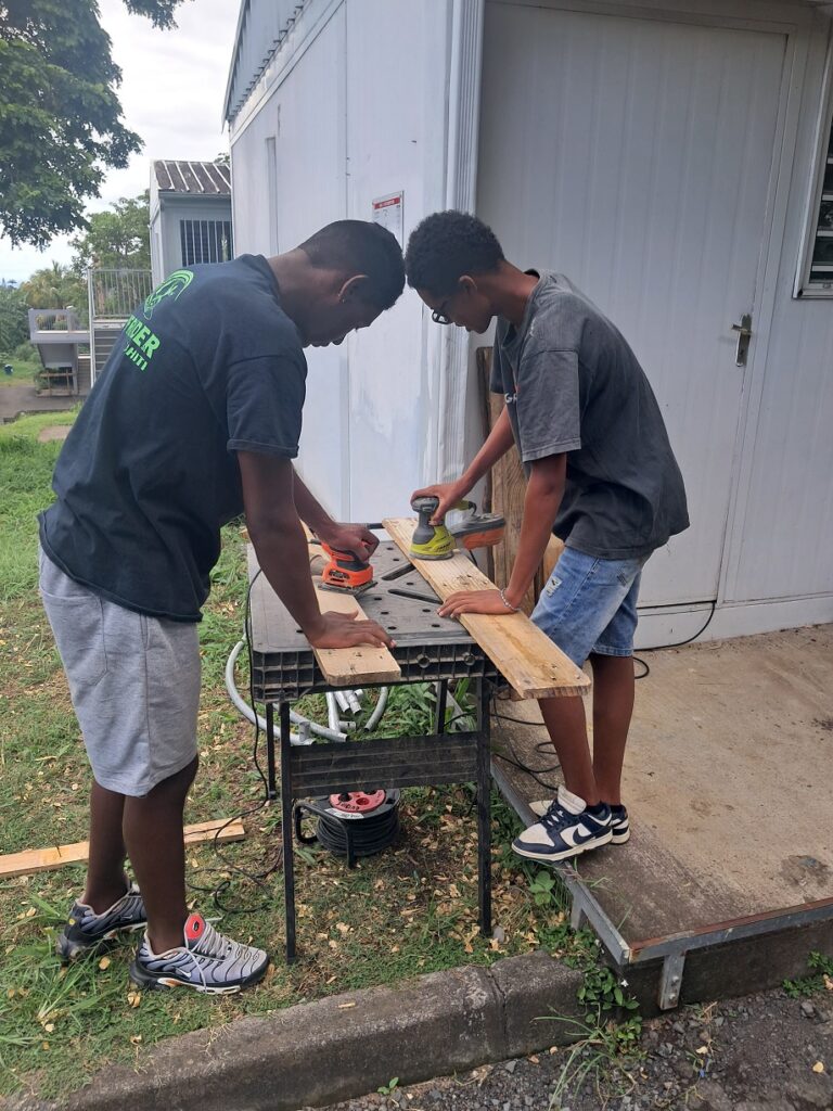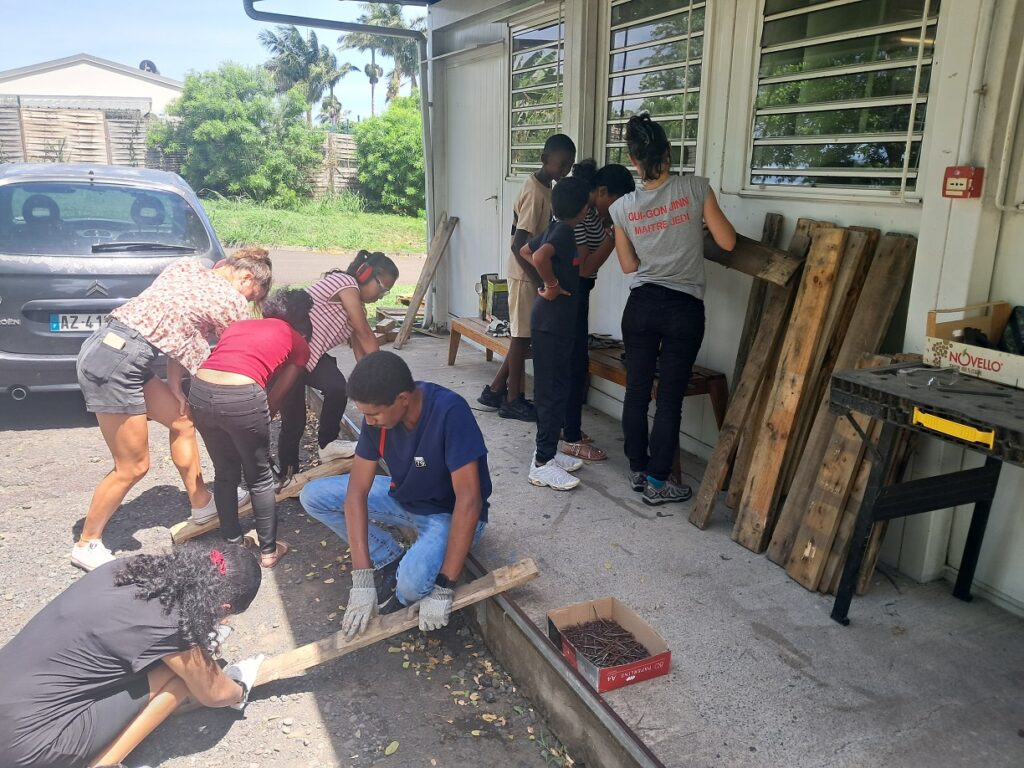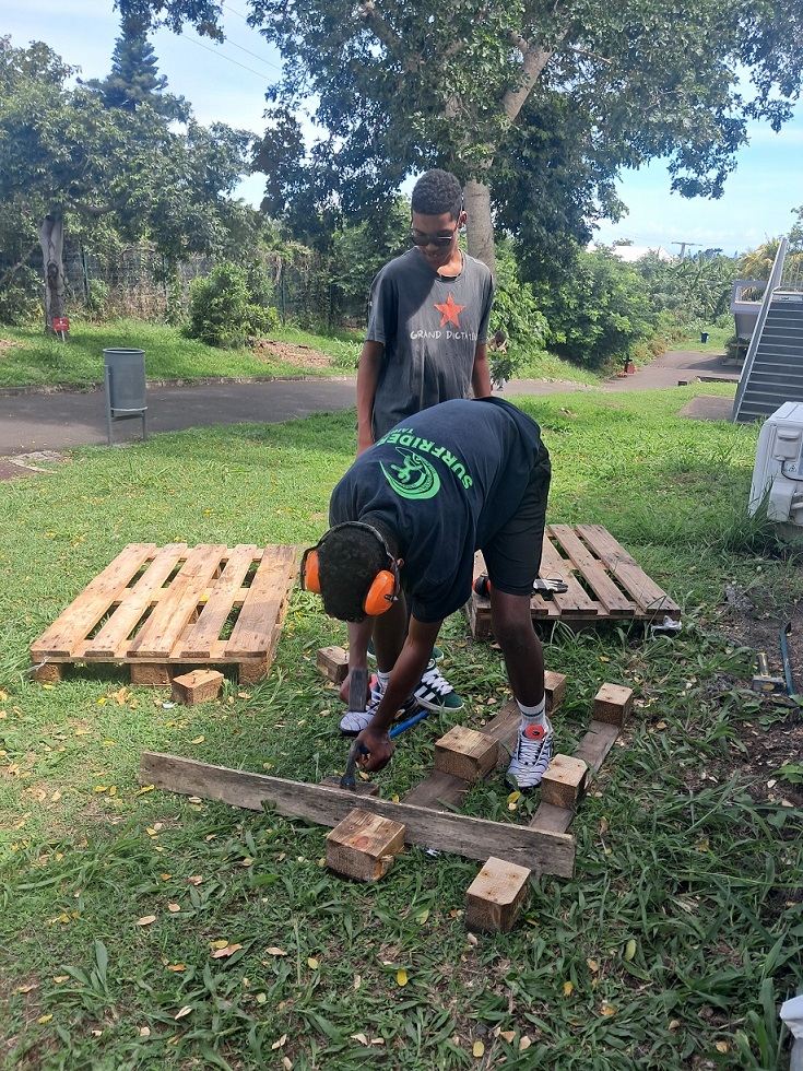 Les élèves ont participé activement à ce projet pour réaliser à partir de 5 palettes récupérées, 2 meubles. Un meuble de rangement très pratique sous le TBI de la F3 (gain de place) et un meuble pour le coin accueil/café du dispositif ULIS qui permet d’accueillir les collègues : agents, AESH, surveillants, enseignants, familles et partenaires !
