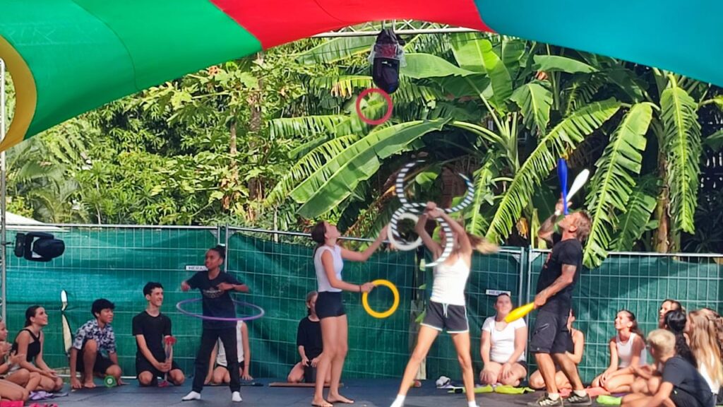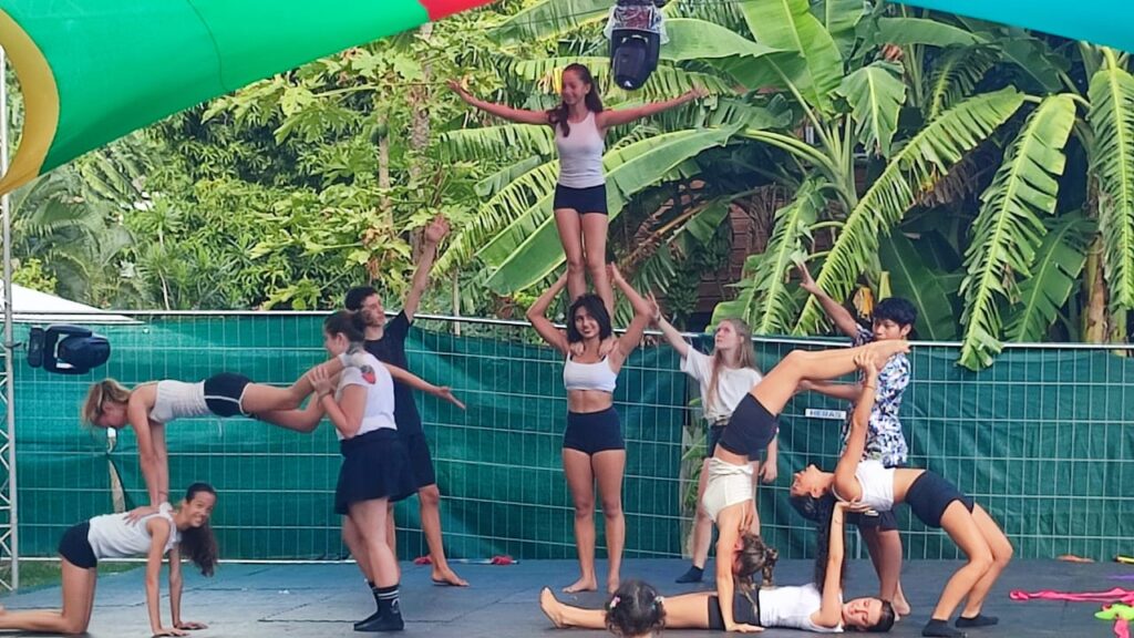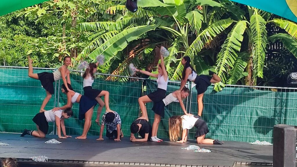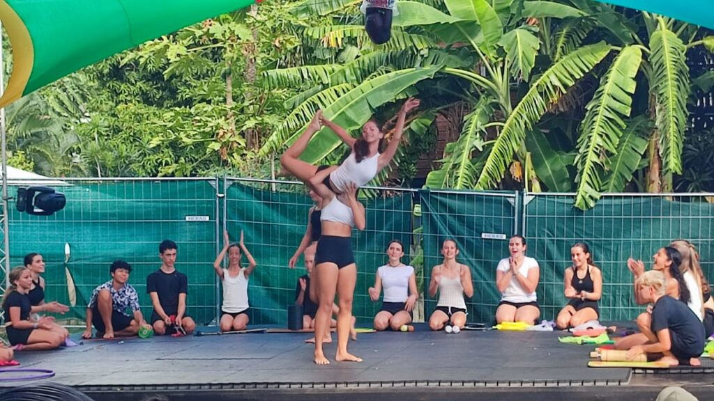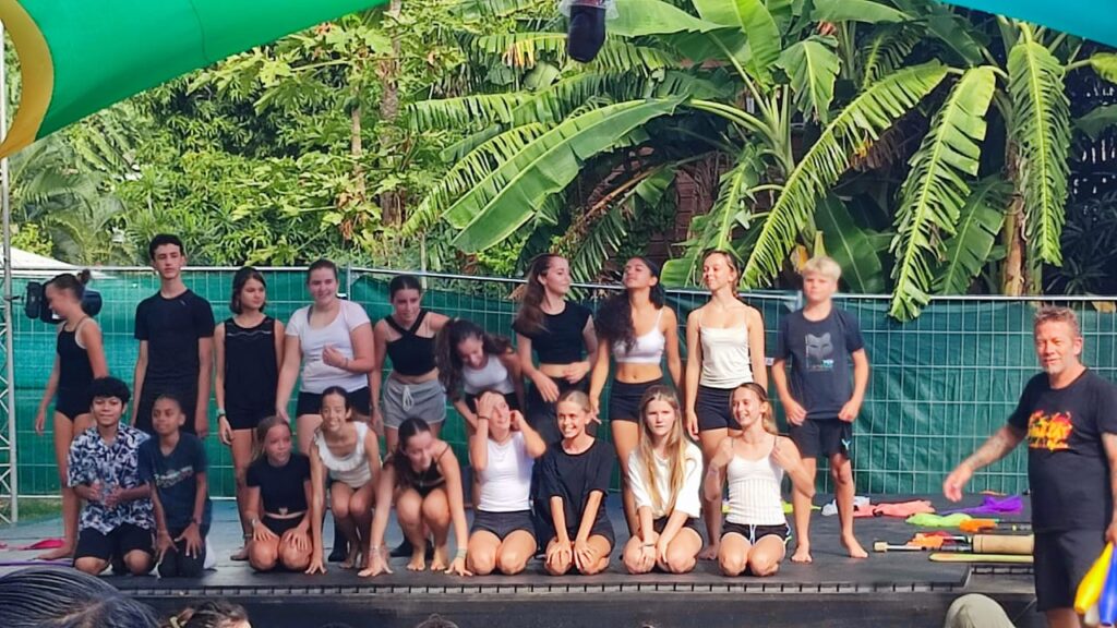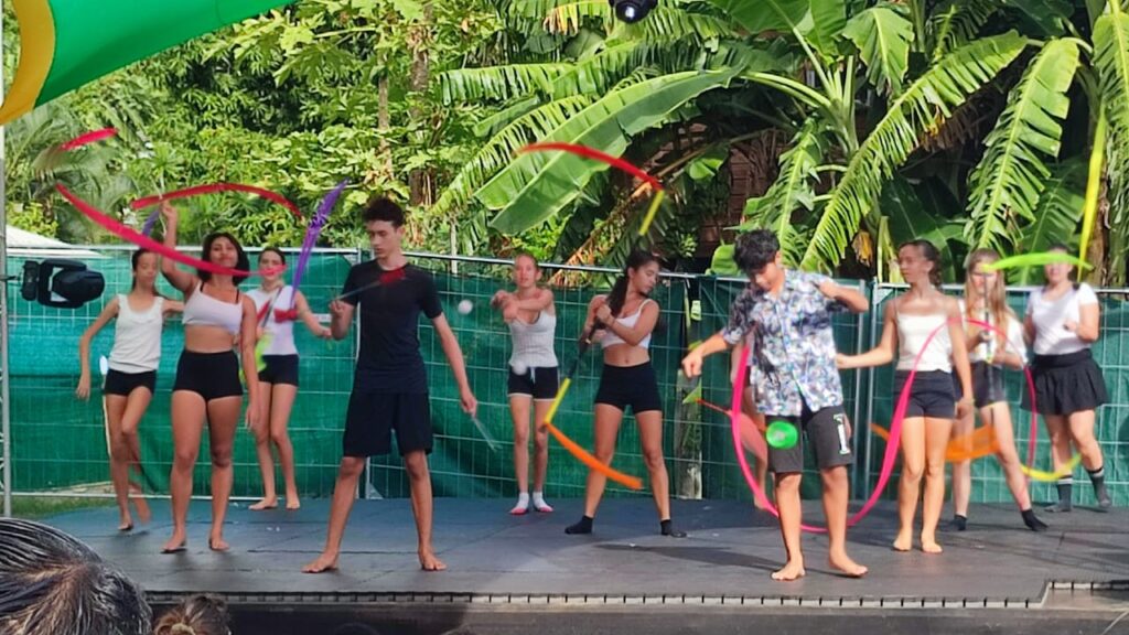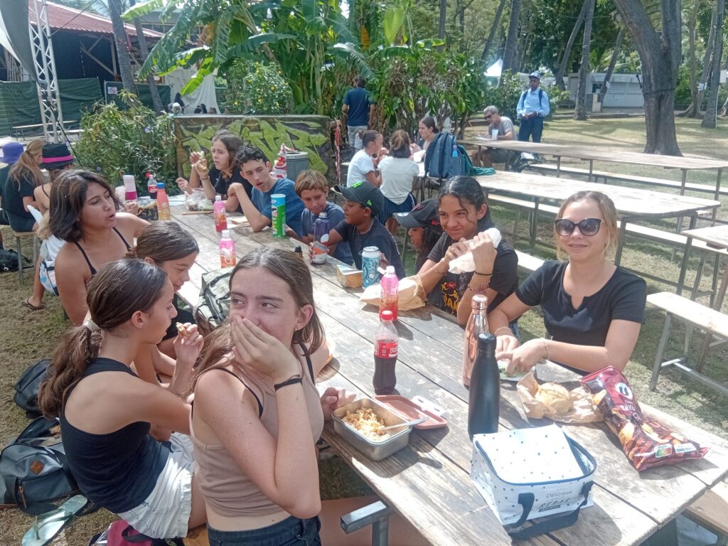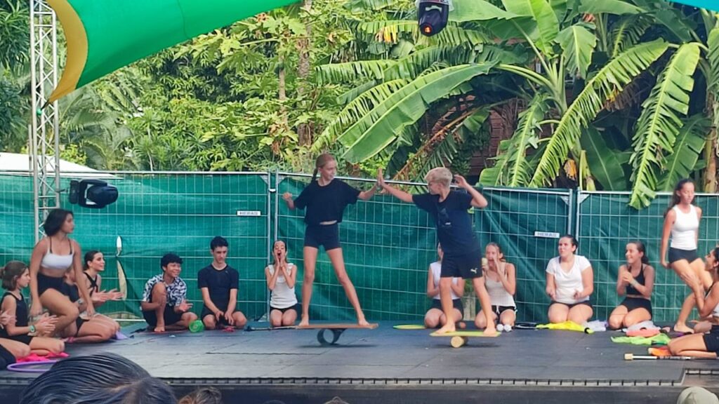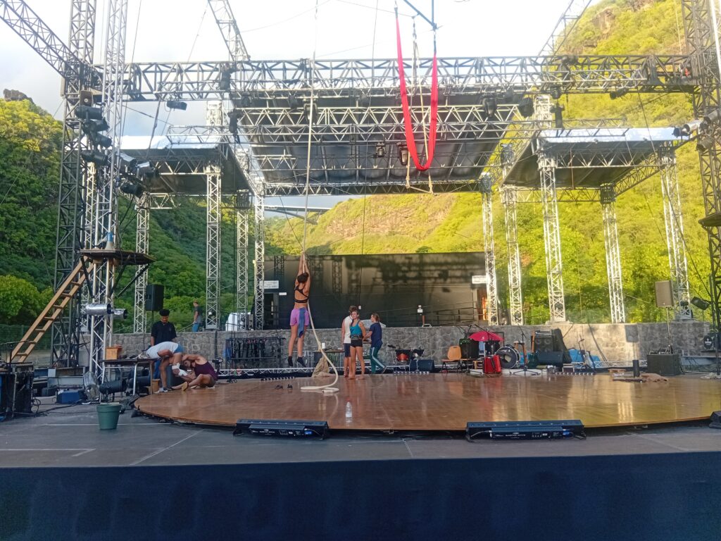 On a continué par la préparation de notre passage sur la scène Amateranlèr : maquillage, costumes et filage à l’italienne. On a proposé 4 tableaux de notre spectacle avec des ovations du public (parmi lequel de nombreux parents, frères et soeurs). Puis on est allés assister aux répétitions du spectacle « Radio Maniok » à la Grande Ravine avant de voir le spectacle de 2 heures ! Retour au collège à 21h30 après une belle journée circassienne…