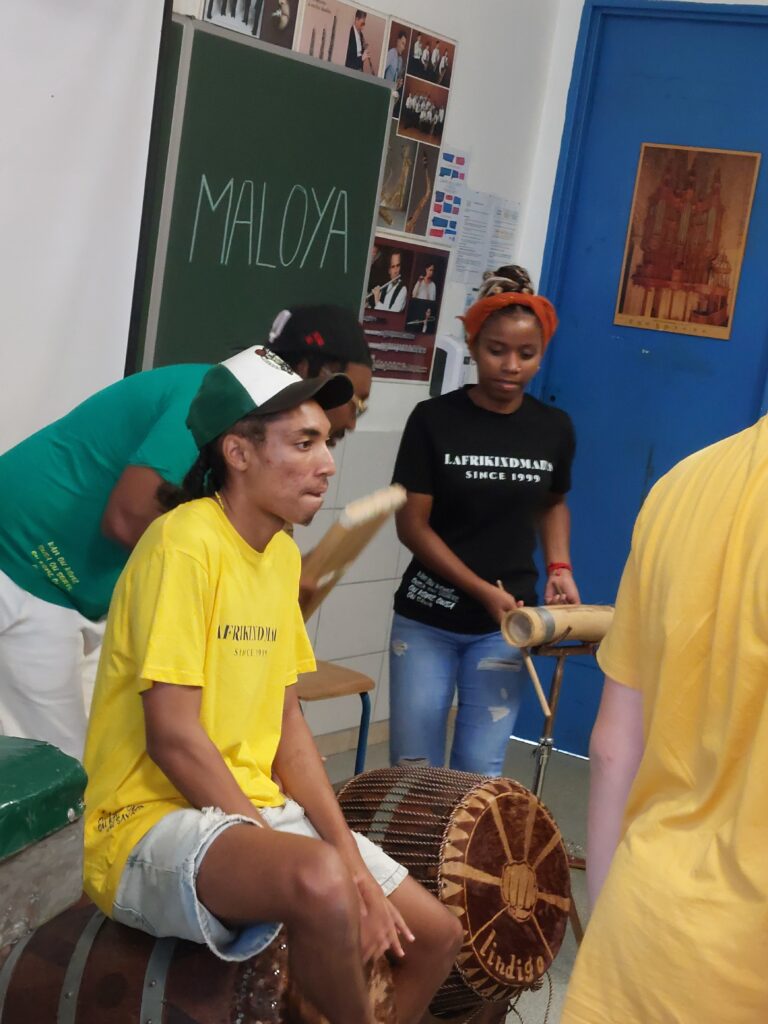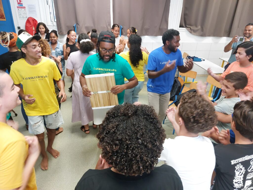 À l’occasion d’une journée spéciale, notre collège a célébré l’inauguration de son nouveau nom et de sa nouvelle identité visuelle : Collège Capitaine Dimitile. Pour marquer cet événement, nous avons eu l’honneur d’accueillir le groupe LINDIGO, qui a animé des ateliers de maloya et initié les élèves à cette musique emblématique de La Réunion.