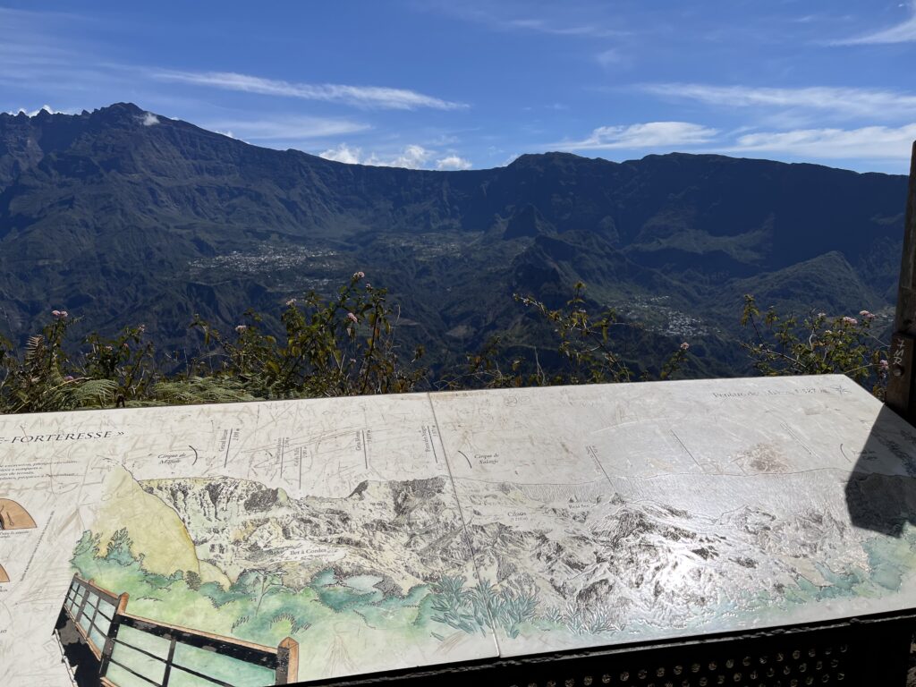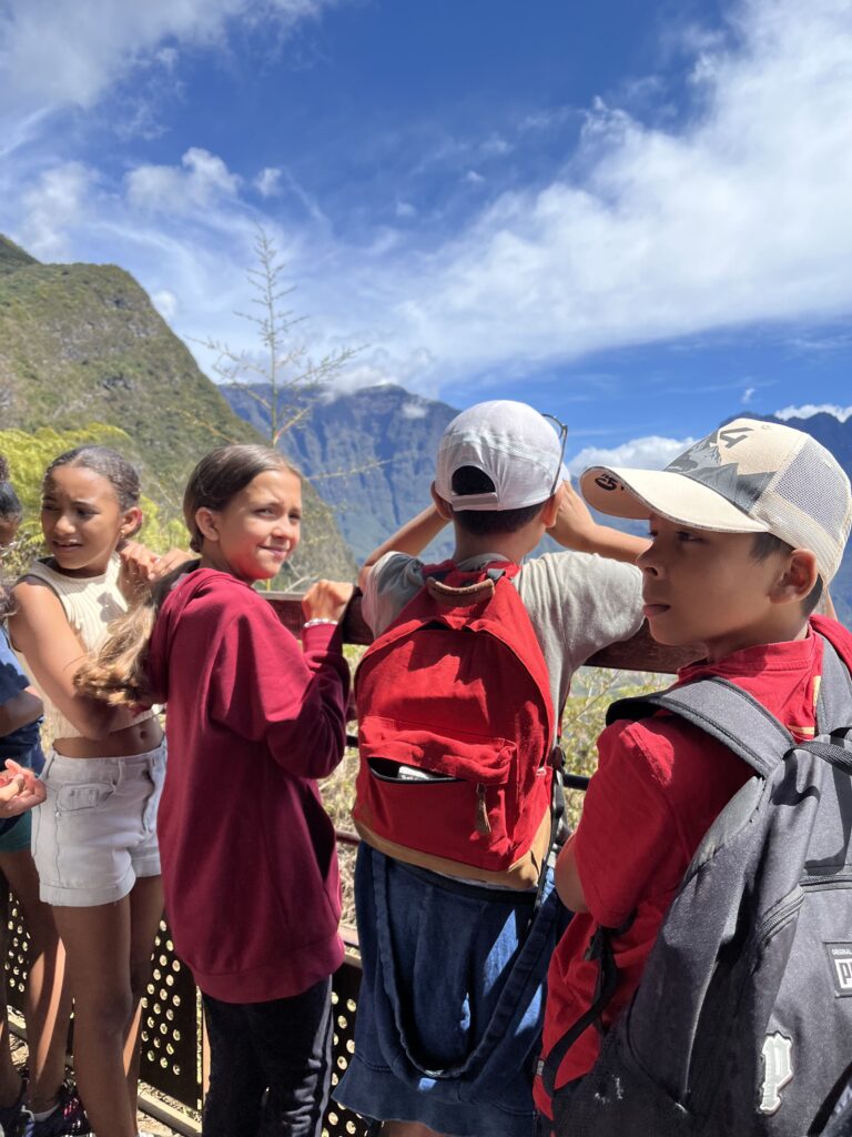 « Ce lundi 10 novembre, nous arrivons à la fenêtre des Makes, il est 9h et il fait 18 degré. Le temps est radieux pour mener à bien l’observation du cirque de Cilaos. Nous avons pu repérer les différents éléments du paysage, travailler sur les sensations lors de la montée à la fenêtre et sur place (fraicheur, vertige, mal aux oreilles, mal au coeur….). Les élèves ont également réalisé le dessin du cirque parfois très abstrait parfois très réaliste. »