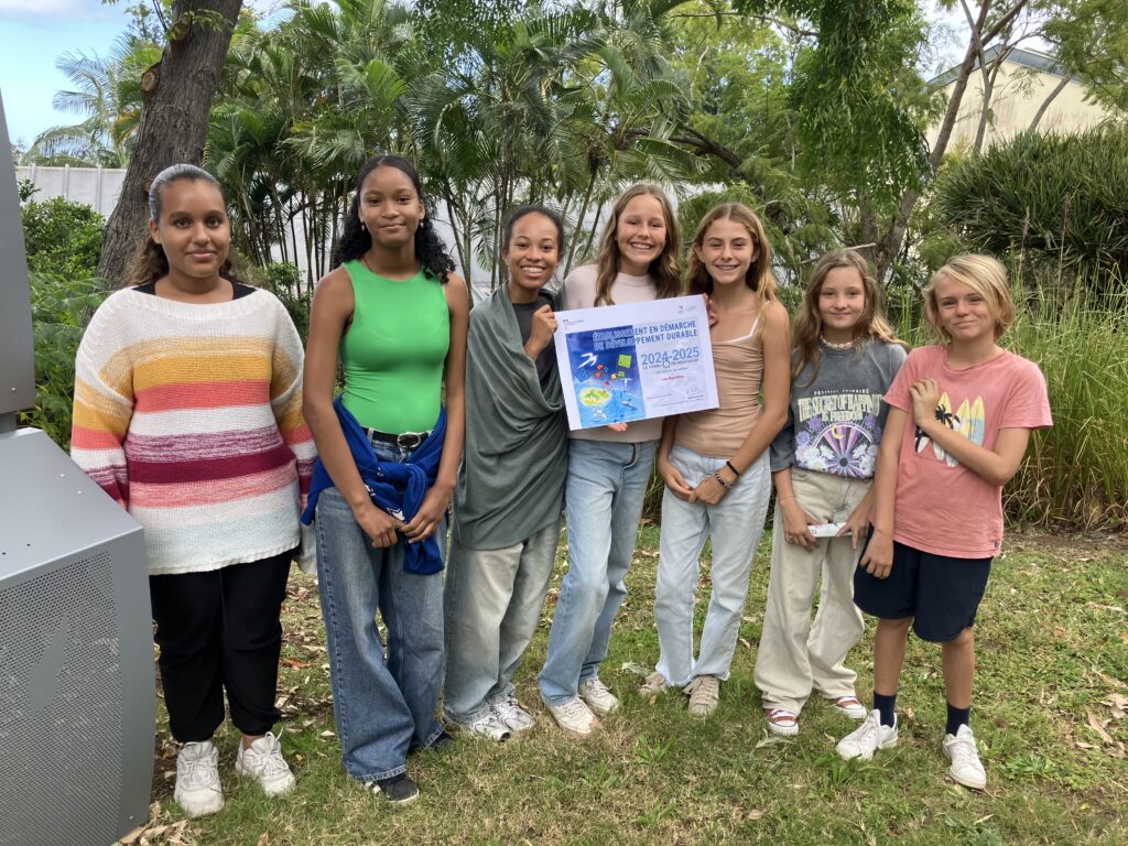 La Journée Académique de l’Education au Développement Durable s’est tenue le 26 mai 2025; nous y avons reçu notre Label E3D (niveau 3: établissement expert). Le CBNM nous a offert, à cette occasion, un arbre à planter: un Bois de Senteur blanc (Ruizia cordata), espèce endémique de la Réunion (unique au monde!), à préserver cet menée de disparition. Nous en sommes très touchés