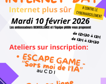 Le mardi 10 février 2026 aura lieu la journée international du Safer Internet Day (Internet plus sûr), un rendez-vous annuel de sensibilisation au bon usage du numérique. La campagne de mobilisation s’étale sur deux mois. Pour marquer cette journée « SAFER INTERNET DAY », deux ateliers sont mis en place le mardi 10 février 2026 à la pause…