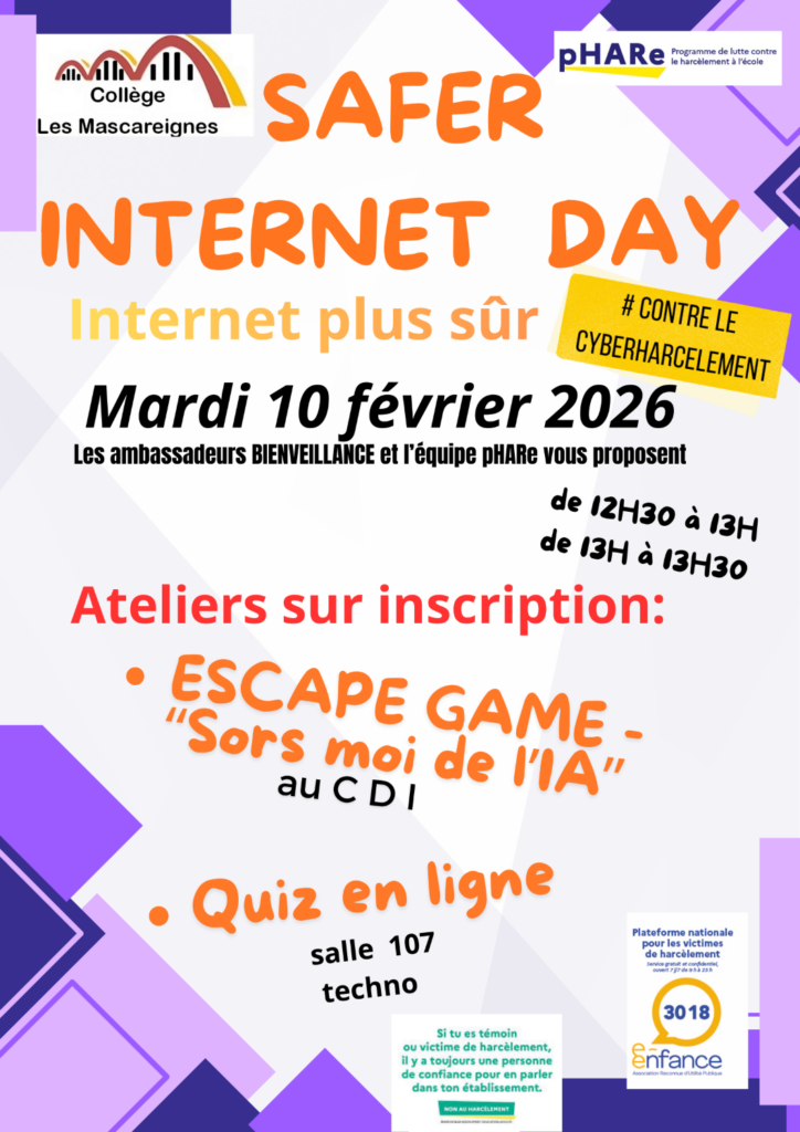 Pour marquer cette journée « SAFER INTERNET DAY », deux ateliers sont mis en place le mardi 10 février 2026 à la pause méridienne:
