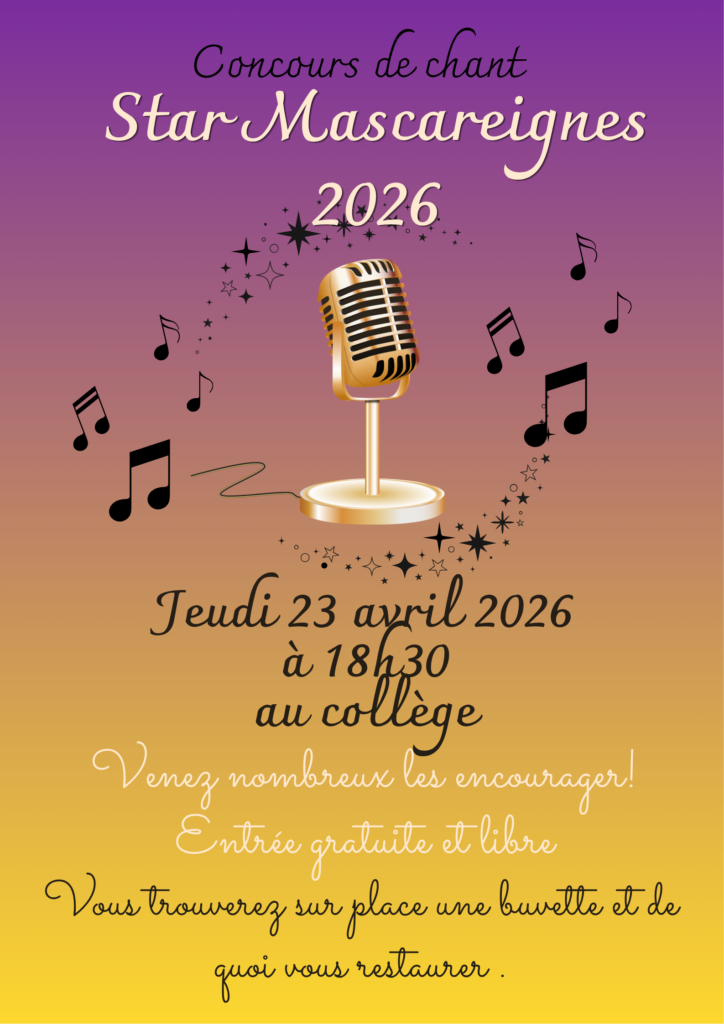 Le jeudi 23 avril 2026 à 18h30 aura lieu la finale du concours de chant « star Mascareignes 2026 » au collège.