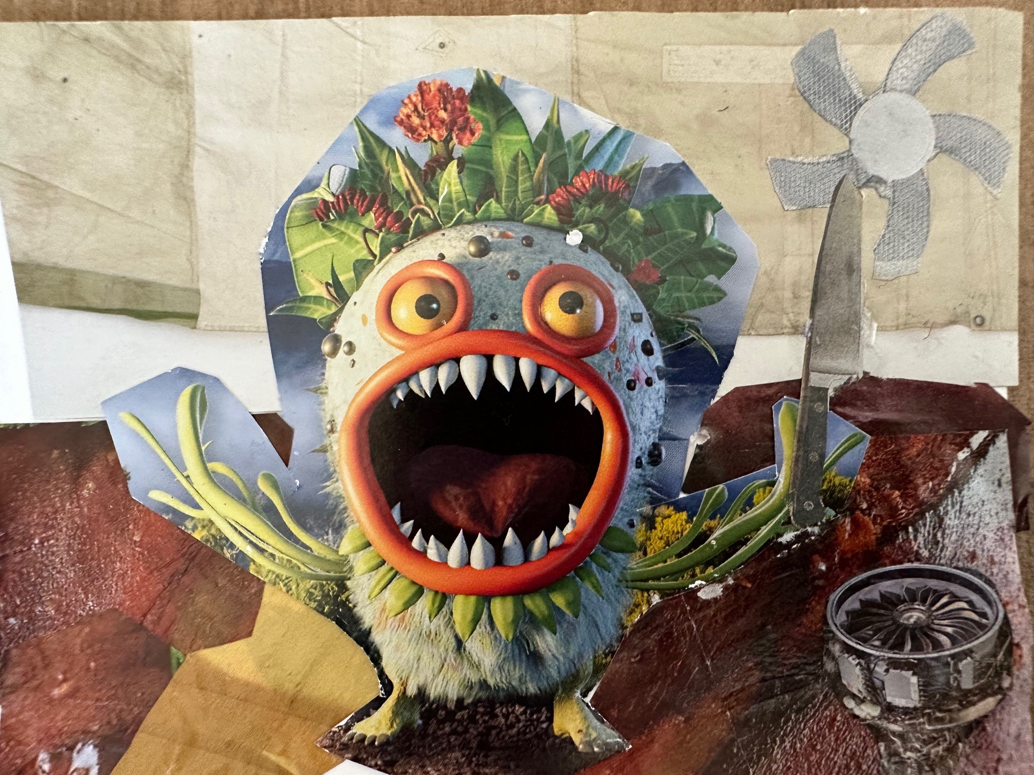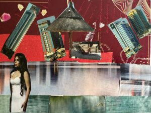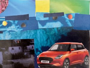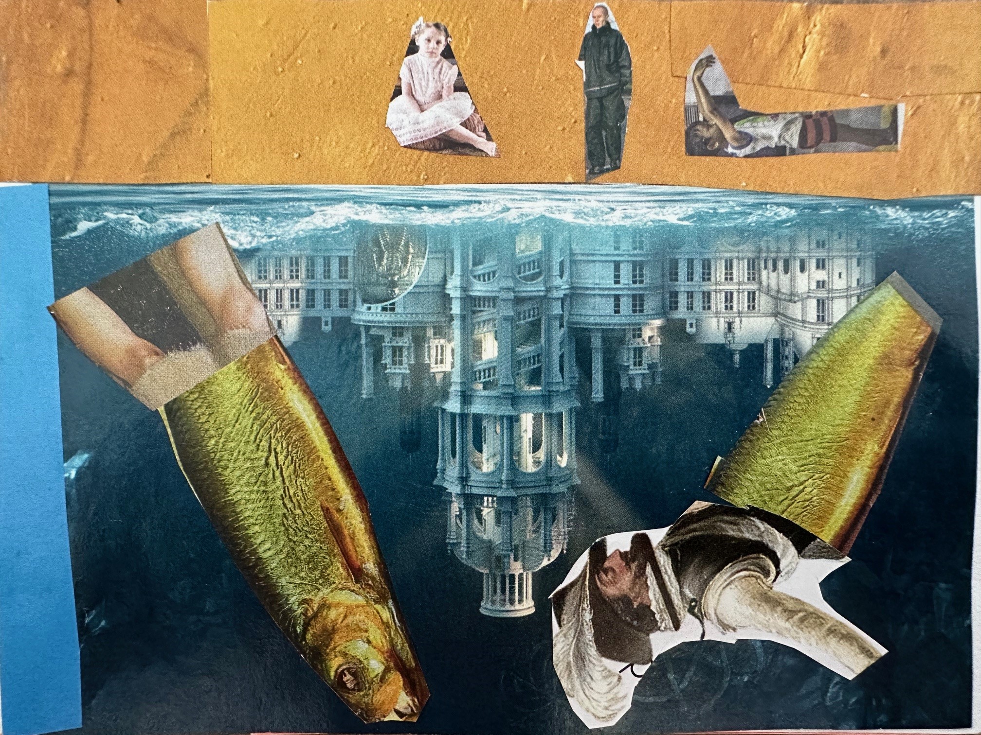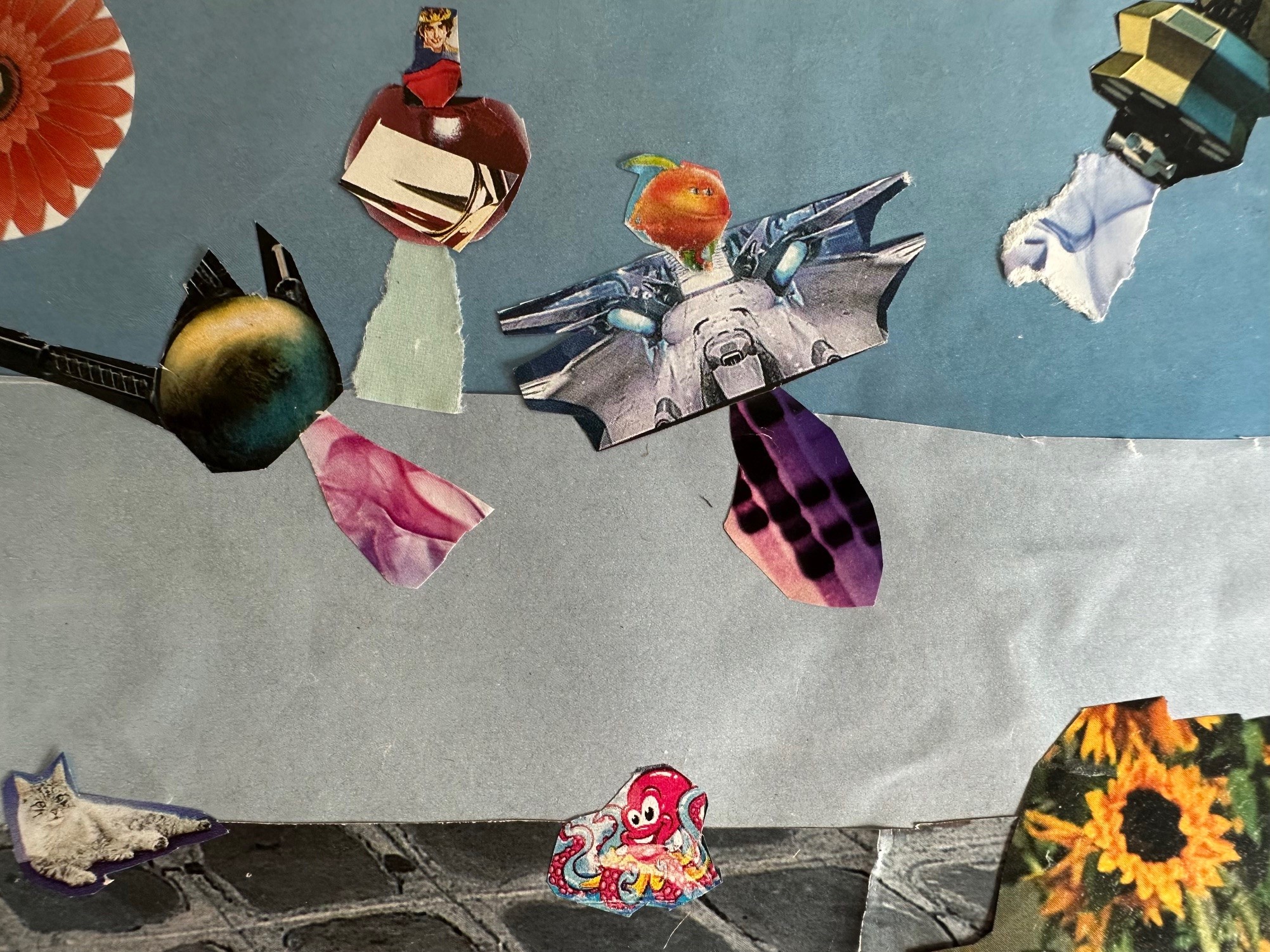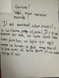 A partir d’images déjà existantes et sur un petit format de carte postale, les élèves ont imaginé un monde irréel. L’objectif est de donner à voir à quoi ressemble le paysage de ce « nouveau monde » et d’expliquer derrière à son correspondant quelle atmosphère s’en dégage.