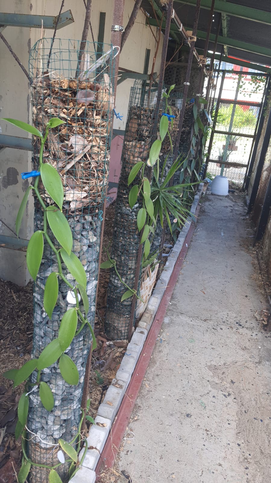 Après les 3 premières périodes de l’année, notre Vanilleraie s’optimise. Le système de goutte à goutte a été validé par notre petite équipe. Nous avons pu bénéficier de la livraison de tuyau plus fonctionnel qui nous facilite le réglage du débit d’eau selon les besoins de nos plantes. Petit à petit, l’espace s’embellit et les lianes s’épanouissent …
