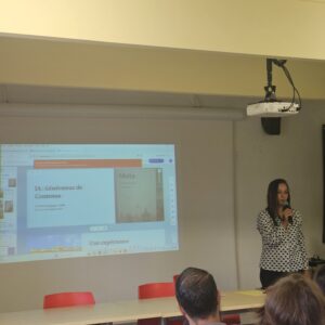 Le 3ème et le 4ème personnel à faire leur restitution ont été Mr MIRANVILLE (professeur de SEGPA) et Mme PREMDJEE (professeure de français). Ils sont partis également sur le thème du numérique (l’Intelligence Artificielle), un des objectifs de notre plan Erasmus.