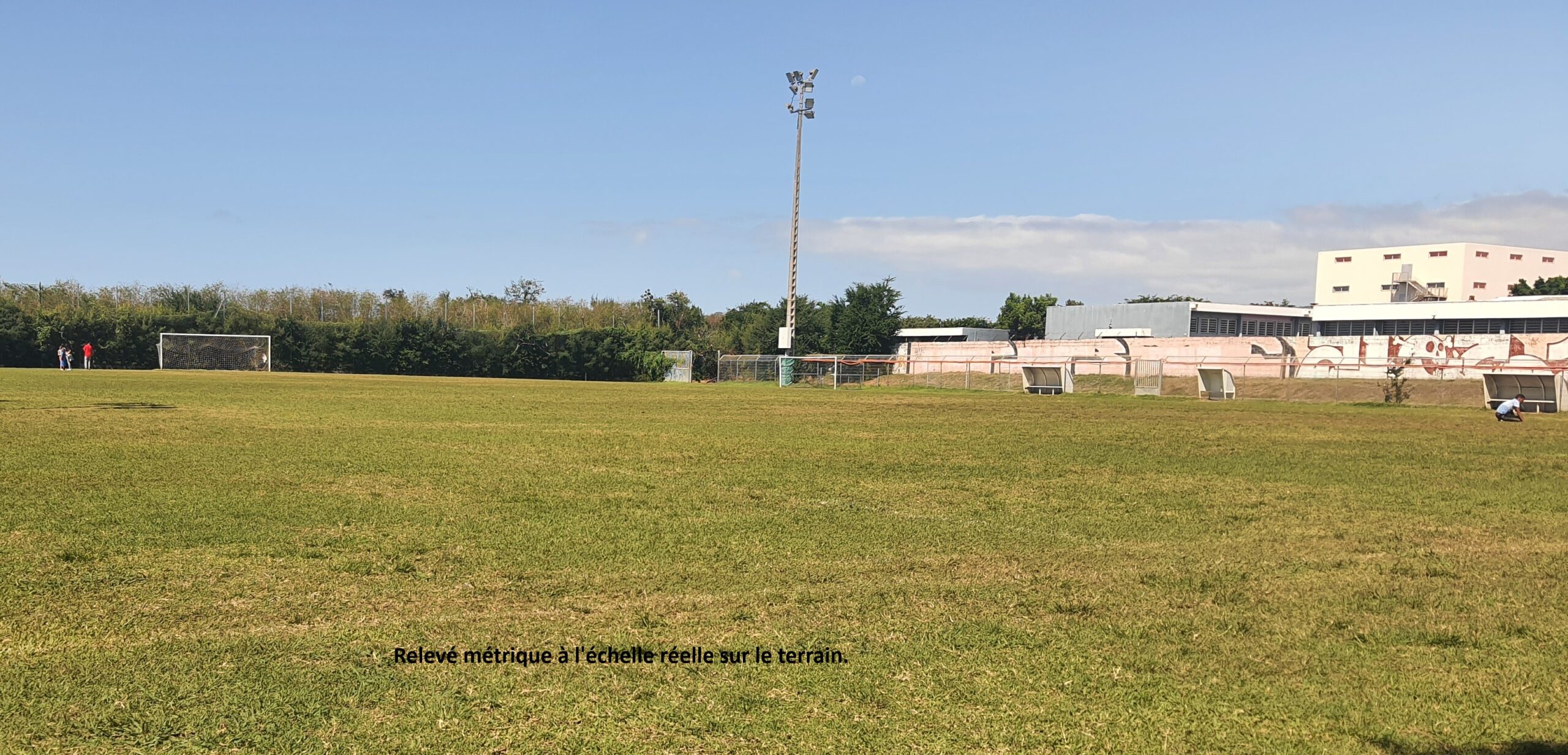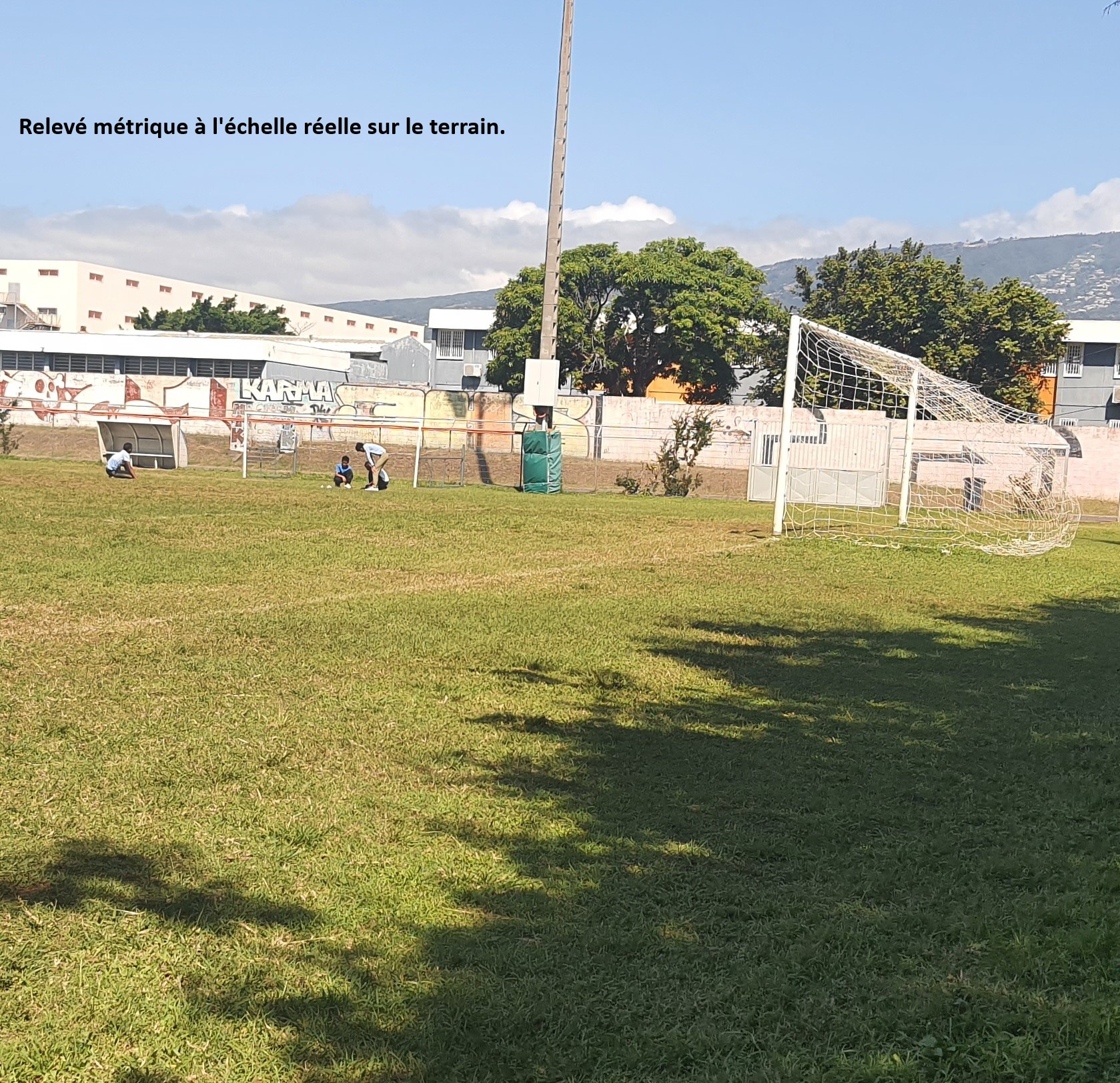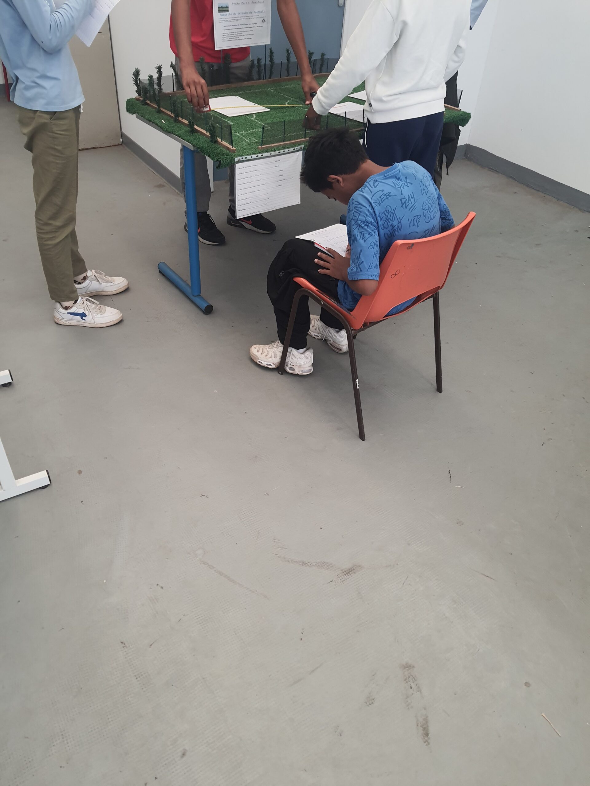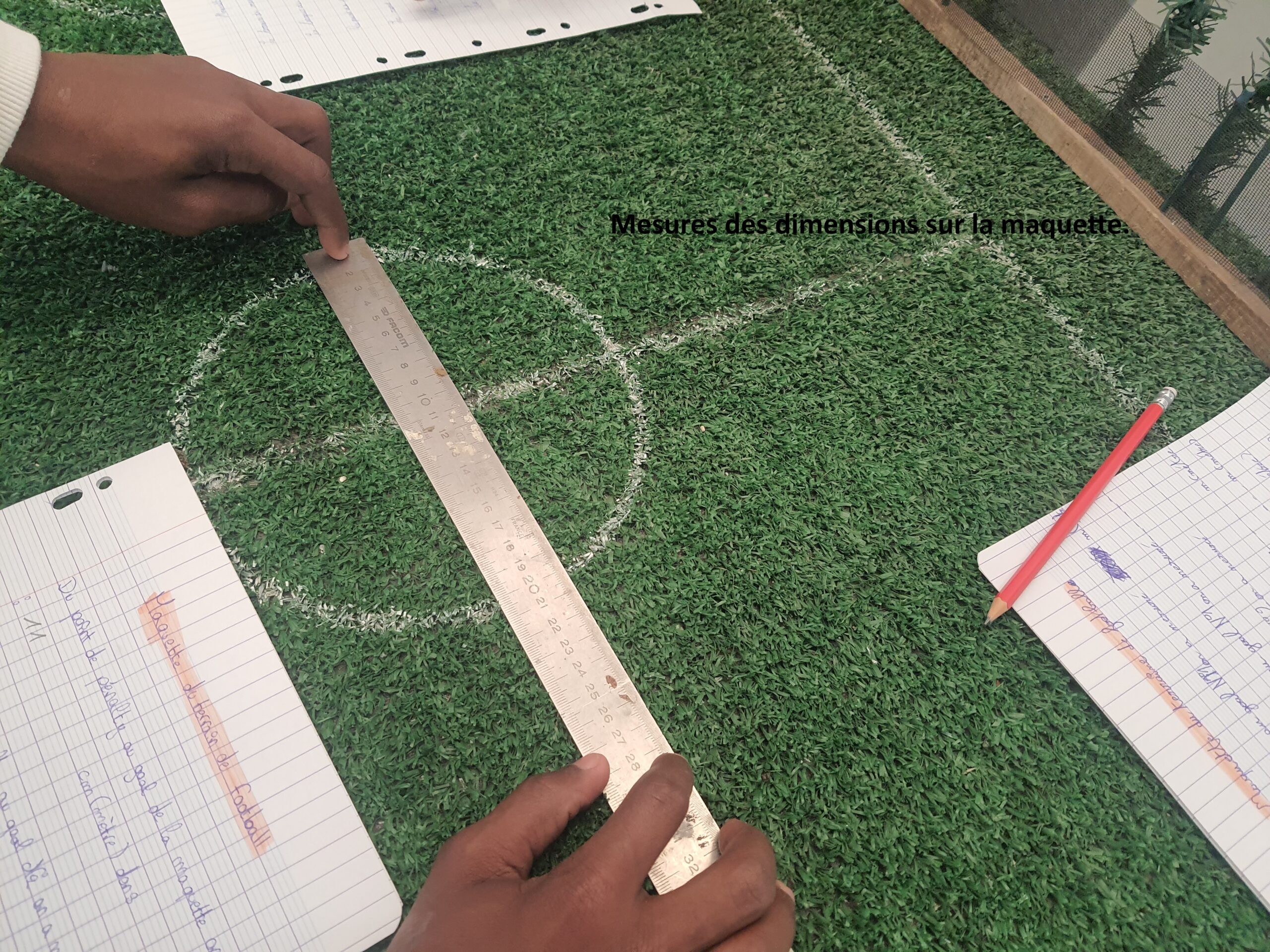 maquette que les élèves avaient précédemment créée en atelier avec celles du terrain de football situé à proximité du collège. Pour cela, les élèves étaient équipés de tablettes afin d’enregistrer les données mesurées, ainsi que de divers outils de mesure tels qu’un mètre de 10 mètres et un décamètre.