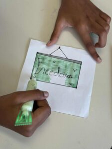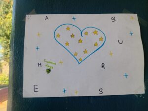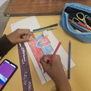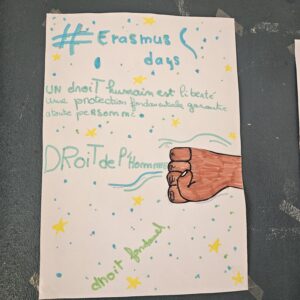 Les élèves de 6ème de Mme IBRAHIM, professeure d’anglais, ont traduit les mots du poster « Erasmus days »: « vivre nos valeurs, dessiner notre avenir » et ont également illustré les mots.