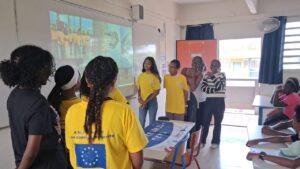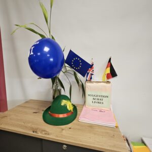 Dès le lundi 6 octobre, le collège a été décoré aux couleurs de l’Europe. Les drapeaux européens des élèves et ceux reçus par Erasmus ont été accrochés à des endroits stratégiques dans le collège (les préaux, la cantine, le panneau « ouverture internationale, l’administration, l’accueil, l’infirmerie, la salle du personnel, le bureau du CPE) et ont été affichés sur des panneaux lièges devant la vie scolaire et le CDI. Nous remercions les agents pour leur aide précieuse dans la logistique ainsi que M.HOARAU Karl et les élèves de la SEGPA pour leur aide précieuse.
