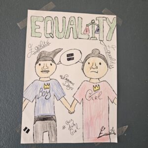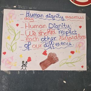 Les élèves ont aussi rédigé des phrases pour exprimer comment nous devons tous agir et l’égalité à laquelle nous avons tous droit en tant que citoyen européen. Bravo pour ce bel investissement!