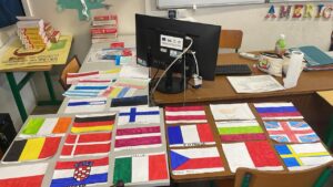 Une semaine avant les Erasmus Days, les élèves de 6ème et de 5ème (des classes de Mmes ALI, FRANCOISE et CLAIRE, professeures d’espagnol), avaient confectionnés des drapeaux européens et traduit le nom des pays en espagnol.
