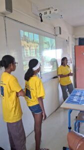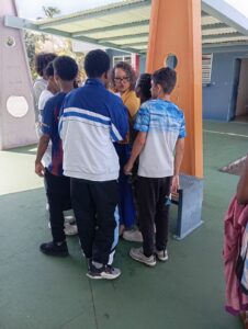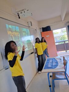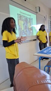 Mme PREMDJEE, professeure de français engagée dans les mobilités de groupe d’élèves ainsi que les élèves de 4ème (Asma, Bérénice, Manelle, Iréna, Léa, Neimaty, Colombe, Alida et Rebecca) parties en Sardaigne au mois de septembre 2025, ont fait une restitution sur leur mobilité dont le thème du projet était « à la recherche d’une nouvelle fraternité » mené avec l’Italie pour que les autres élèves du collège n’aient pas peur de s’engager dans des projets européens et aient envie de participer à leur tour.