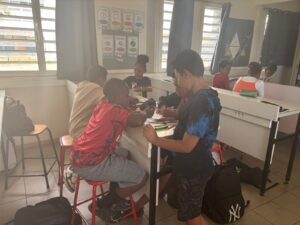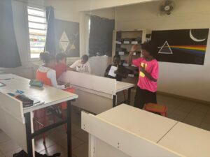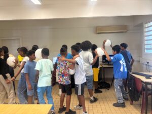 Mr ALEXIS, professeur de musique a proposé un moment musical. Les élèves ont chanté » Imagine » de John Lennon en anglais, en français et en créole et ont été accompagnés par les élèves en atelier instrumental. Nous remercions, Mr ALEXIS pour cette petite pause musicale.