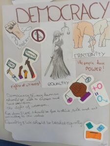 Les élèves de 4ème de Mme DEVEAUX, professeure d’anglais, ont fait des affiches afin de définir les notions mises en avant par la thématique de cette année, notions telles que la liberté, la démocratie, la dignité humaine…….