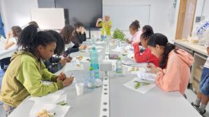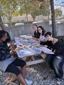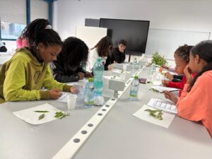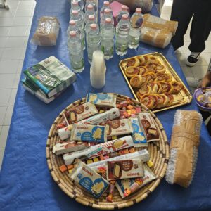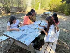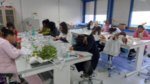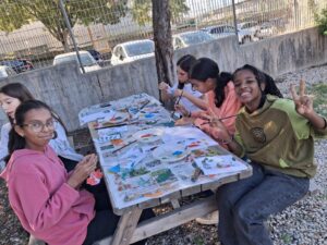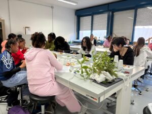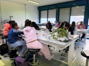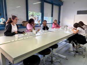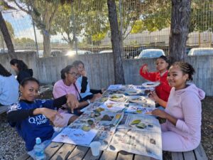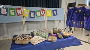 5ème et dernier jour au collège: La 1ère activité s’appelait « le test multisensoriel du panier garni ». Les apprenants ont exploré une variété d’aliments et d’épices (pain, bonbons sardes, clous de girofle, sauge, menthe, romarin, hélichryse) par la dégustation et l’odorat. Elles ont partagé des impressions et associé des saveurs et des parfums avec les traditions culturelles. Les élèves ont élargi leur connaissance culturelle des traditions locales et du patrimoine méditerranéen. L’activité a encouragé l’ouverture à la diversité et l’appréciation de l’identité culturelle à travers la nourriture et la nature.