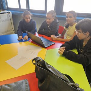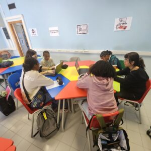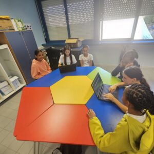 Puis nous avons effectué notre 1ère activité sur la citoyenneté. Il s’agissait, en groupe, de créer des puzzles numériques à l’aide d’une application, sur la base d’images qu’elles ont sélectionnées représentant des symboles de la République. Après avoir terminé les énigmes, elles ont présenté en anglais les symboles choisis à leurs pairs, en expliquant leur signification. Une approche qui a permis de combiner la compétence numérique avec l’éducation civique, et de promouvoir la créativité, la coopération et l’apprentissage entre pairs.