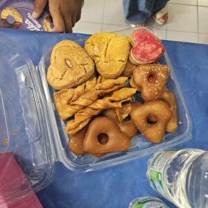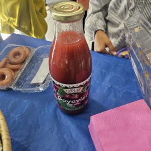 Nous avions également emmené des spécialités de notre île (jus de goyavier, jus de mangue, bonbons cravates, bonbons de miel, napolitaines, pâtés créoles) pour faire découvrir nos saveurs exotiques.