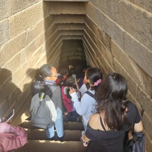 C’est partiiiiii pour le 2ème jour et pour la visite guidée du puits sacré de Santa Cristina et du village de Bosa. Pendant la visite, les élèves ont observé des caractéristiques architecturales et culturelles, écouté des explications de guides en anglais et accompli de petites tâches telles que prendre des notes, poser des questions et identifier des éléments historiques ou culturels clés. Les élèves ont acquis des connaissances sur l’histoire locale, l’archéologie et le patrimoine culturel. L’activité a également favorisé la curiosité, la sensibilisation interculturelle et la capacité de relier les connaissances historiques et culturelles à la compréhension civique.