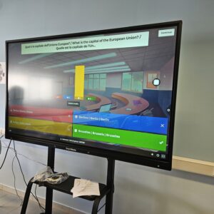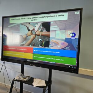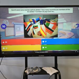 3ème jour à Sassari: les élèves sont au collège pour une journée d’activités.La 1ère activité a été un quiz sur l’Union Européenne, livré soit via un outil numérique (Kahoot) ou en version papier. Grâce à cette activité, les apprenants ont amélioré leur connaissance de l’Union européenne, de ses institutions, de ses valeurs et de ses principales politiques. L’activité a également favorisé la compétence numérique (dans le cas de la version en ligne) et encouragé le travail d’équipe, la motivation et la sensibilisation civique à l’Europe.