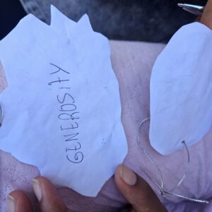 La 2ème activité du jour consistait à écrire une responsabilité civique sur une feuille de papier et l’accrocher à un arbre symbolique visible par tous. Une réflexion sur l’identité européenne, les droits et les devoirs communs afin de renforcer l’empathie entre les cultures.