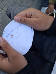 Nous avons terminé cette journée par une activité brise-glace « découvre qui je suis ». Les élèves devaient dessiner des choses ou écrire des mots qui les représentaient.