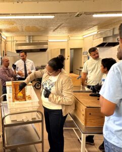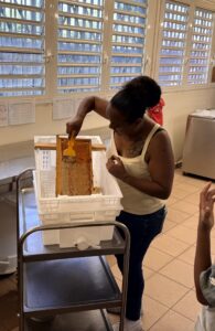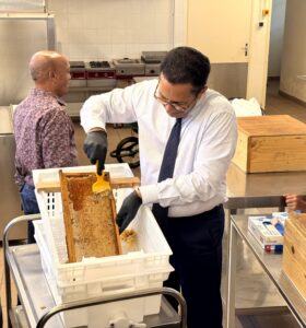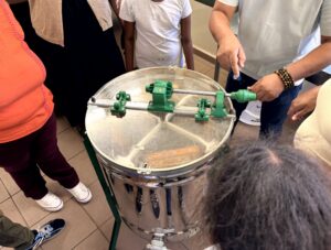 L’activité principale était la récolte du miel, un parcours complet qui a permis aux élèves de montrer à leurs parents les compétences acquises en apiculture au fil de l’année. La ruche, située au cœur de l’établissement et entretenue par les élèves tout au long de l’année scolaire, a été la pièce centrale de cet atelier pédagogique et valorisant.