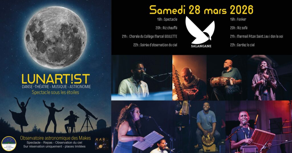 Samedi 28 mars, la chorale du collĂšge a vĂ©cu une expĂ©rience unique en Ă©tant invitĂ©e par lâObservatoire Astronomique des Makes Ă participer Ă la soirĂ©e Lunartist.
