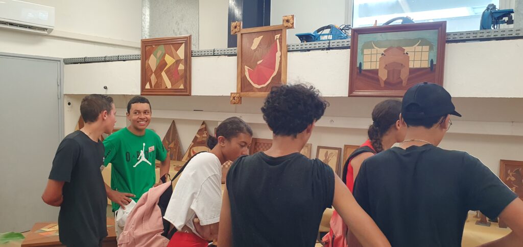 Les professeurs de français, d’histoire-géographie et de technologie ont organisé une journée d’intégration des élèves. Nous avons été accueilli par l’Association pour le Développement et l’Insertion à CAmbuston (ADICA) de St André. Au programme, réalisation d’objets en bois et rougail saucisses.