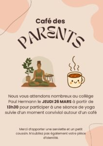 Le collège vous invite à un Café des parents placé sous le signe de la détente.