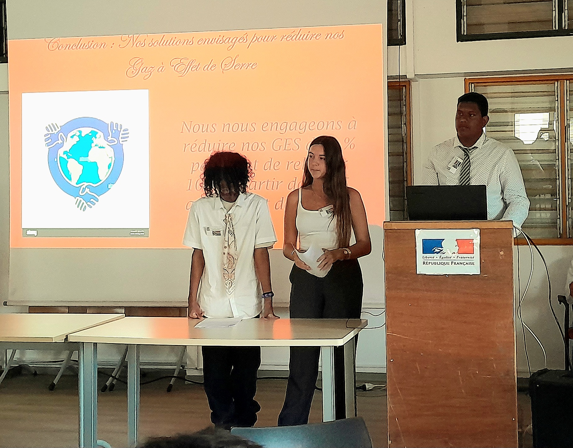 Après les vacances de la Toussaint 2025, le lycée Evariste de Parny a accueilli une simulation de la COP 30, réunissant des élèves de Terminale (option HGGSP) et des collégiens de 3e du collège Plateau Caillou. Cette rencontre s’inscrivait dans le calendrier réel des négociations internationales, la véritable COP 30 se tenant en novembre au Brésil. Encadrés par Mme Rostaing (collège Plateau Caillou) et Mme Hoareau (lycée E. de Parny), les élèves ont pris part à un jeu de rôle des négociations climatiques internationales. Les élèves représentaient différents États, ont rédigé des discours officiels, négocié des accords et rédigé un rapport d’engagements. Ils ont dû chercher des informations fiables et défendre leurs choix à l’oral.