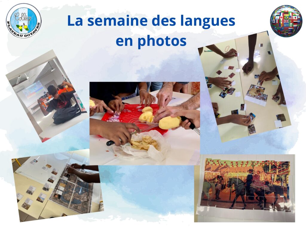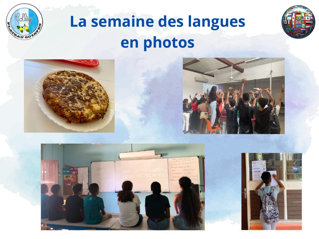 Du 3 au 7 avril 2023, tous les établissements de l’académie de la Réunion célèbrent les langues. Ainsi, les professeurs du collège Plateau Goyaves proposent à tous les élèves de mettre en valeur les langues et cultures qui leur sont enseignées.