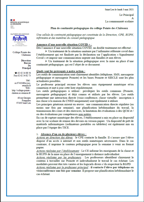 515 Full size 767 × 1077 pixels Plan de continuité pédagogique du collège Pointe des Châteaux Next image