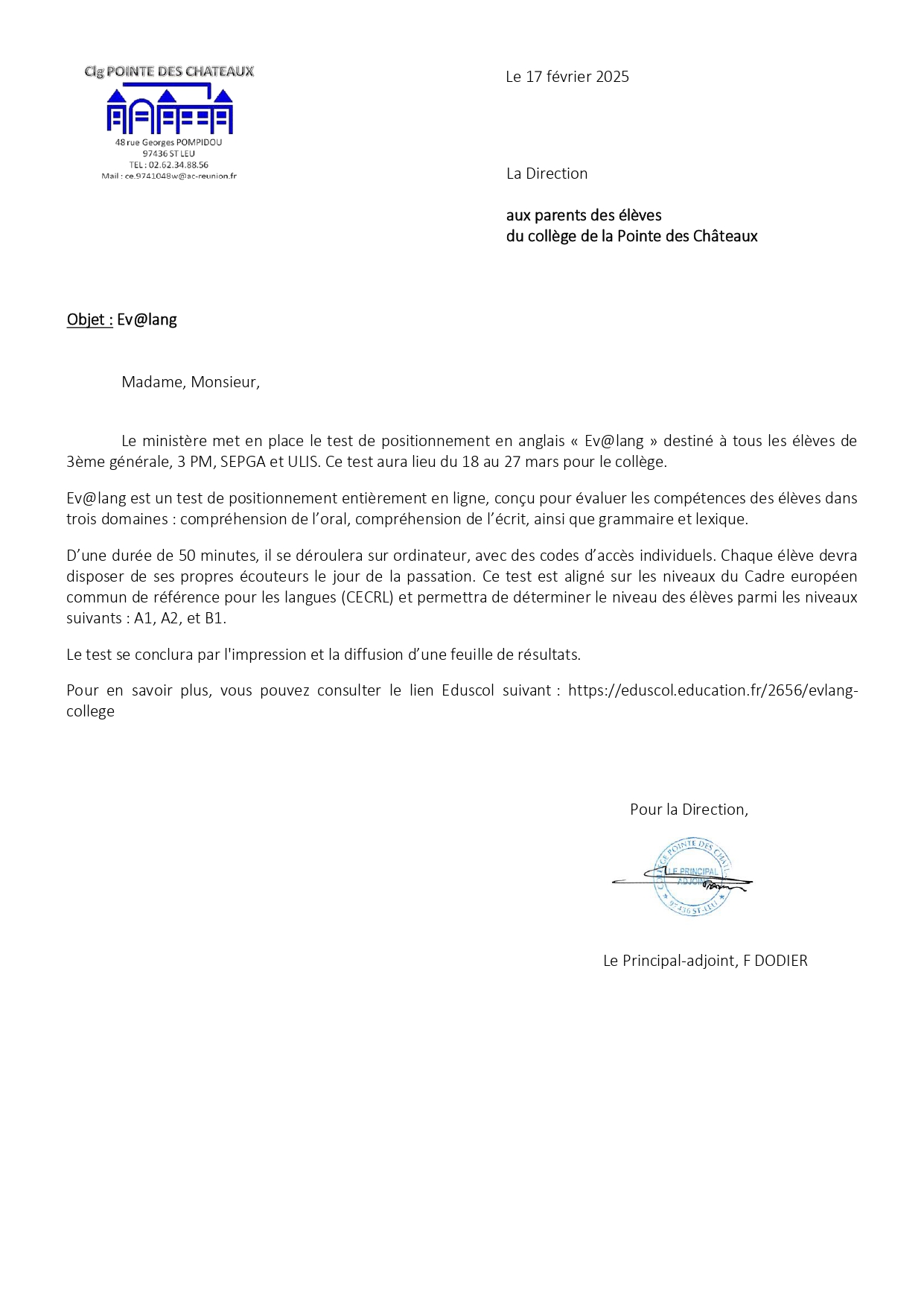 Mise en place d’Ev@lang 17 février 2025 17 février 2025 Journées portes ouvertes Lycée Ambroise Vollard Information aux parents d’élèves pour les réunions parents professeurs