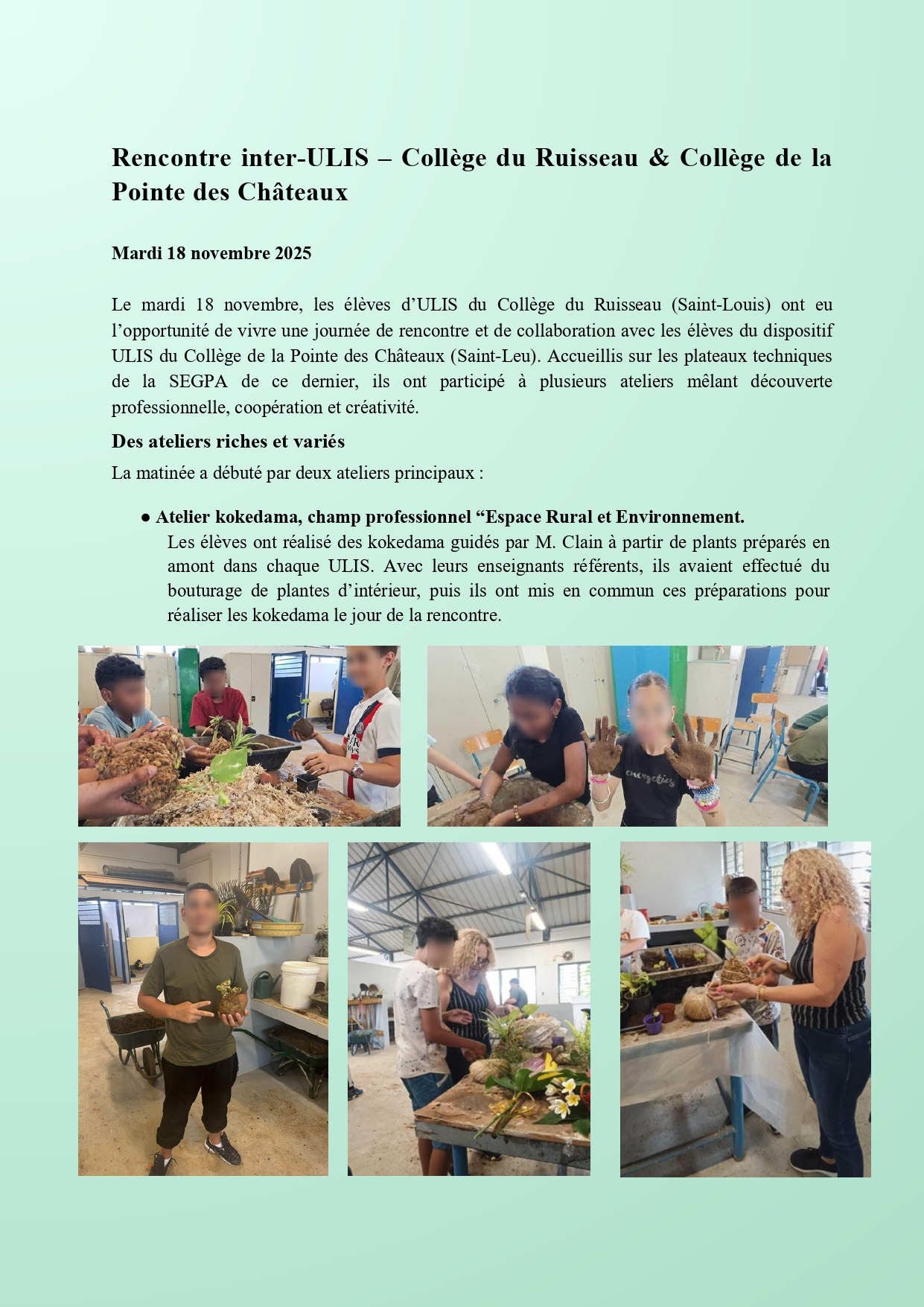 Rencontre inter-ULIS – Collège du Ruisseau & Collège de la Pointe des Châteaux 20 novembre 2025 20 novembre 2025 Demande d’aménagement pour les épreuves du DNB 2026 Rencontres-bilan Parents/Professeurs du premier trimestre