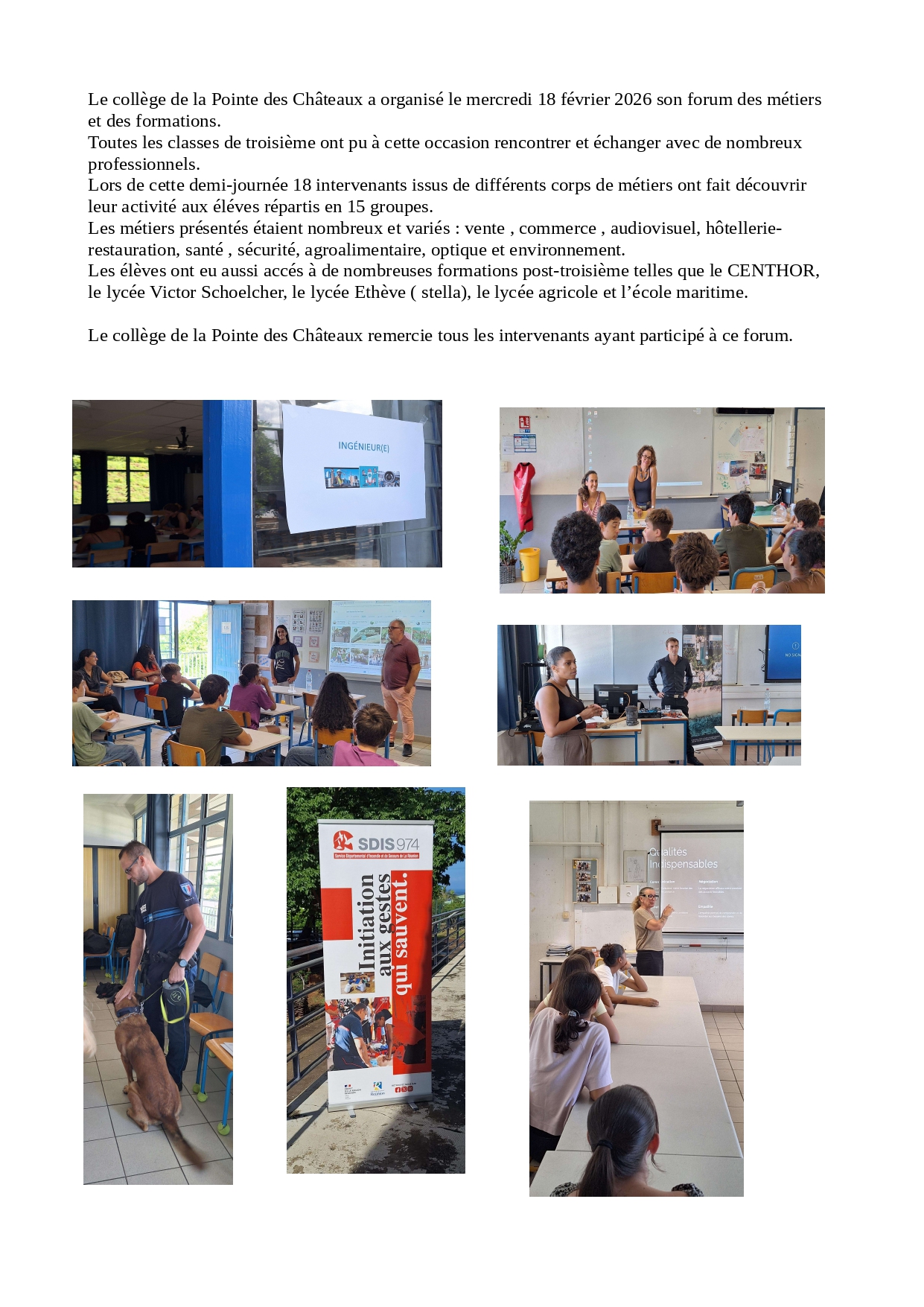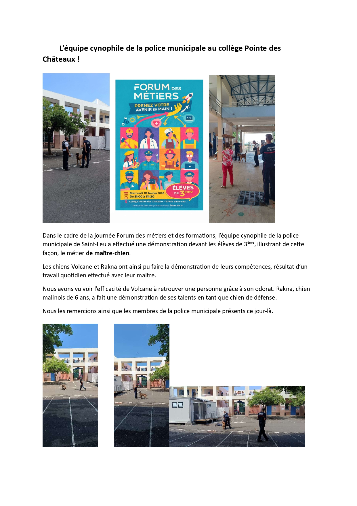 Grand forum des formations et des métiers au collège Pointe des châteaux et démonstration de la brigade cynophile de la police municipale de St leu 19 février 2026 19 février 2026 Journée Portes Ouvertes Lycée agricole CFAA-CFPPA Saint Joseph Finale du Championnat académique d’échecs