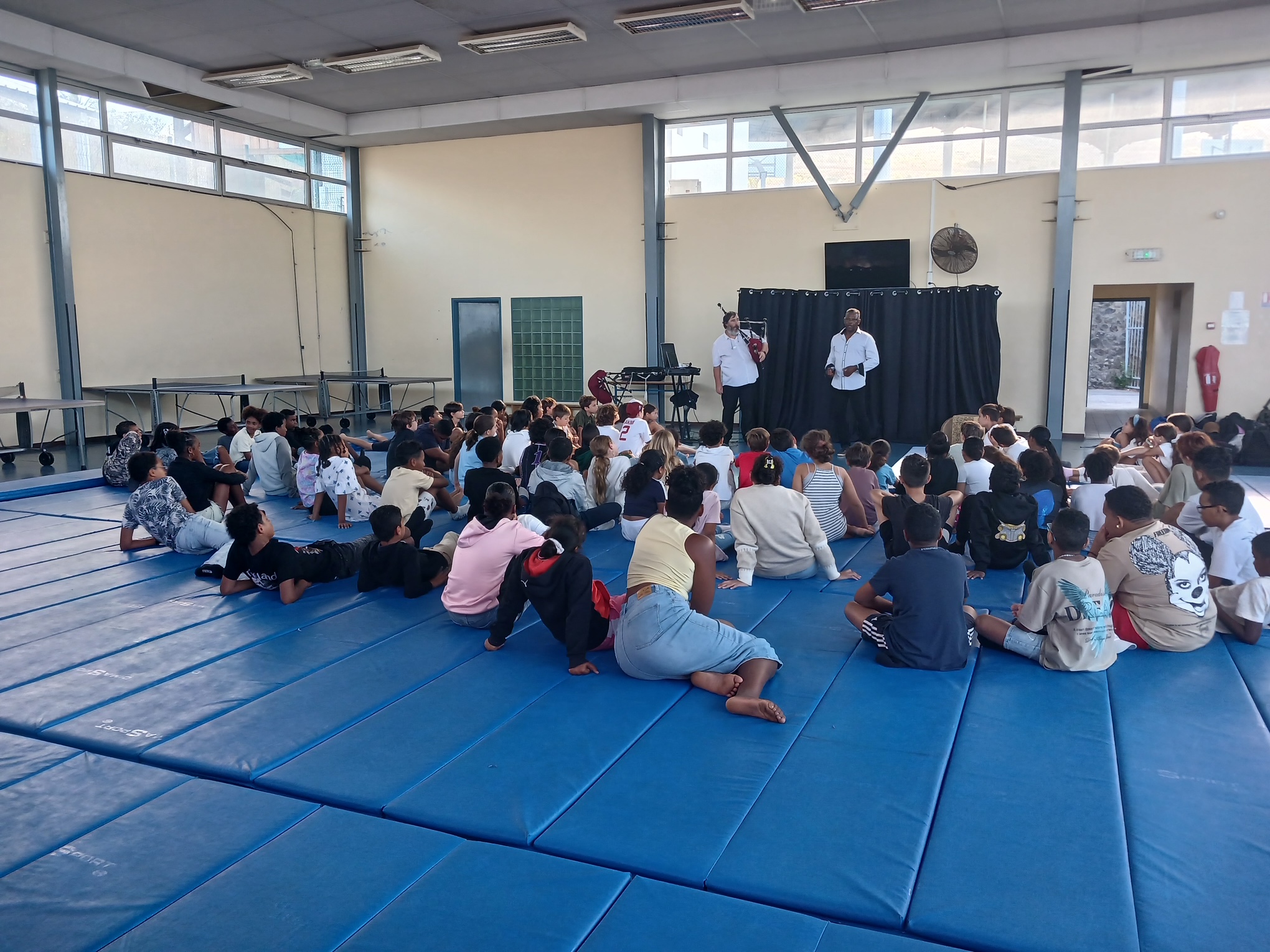 Ils ont pu apprécier ce conte classique revisité en français et en créole rehaussé par le son d’une surprenante cornemuse.