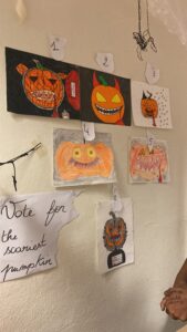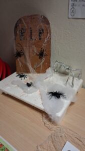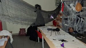Halloween s’est fermement installé dans une « salle hantée » décorée avec soin par les 3e EURO ANGLAIS. Ils ont pensé à tout pour  rendre cette visite inoubliable : jump scare, spooky playlist, spiderweb, … tout y était pour que vous passiez un moment terrifiant.