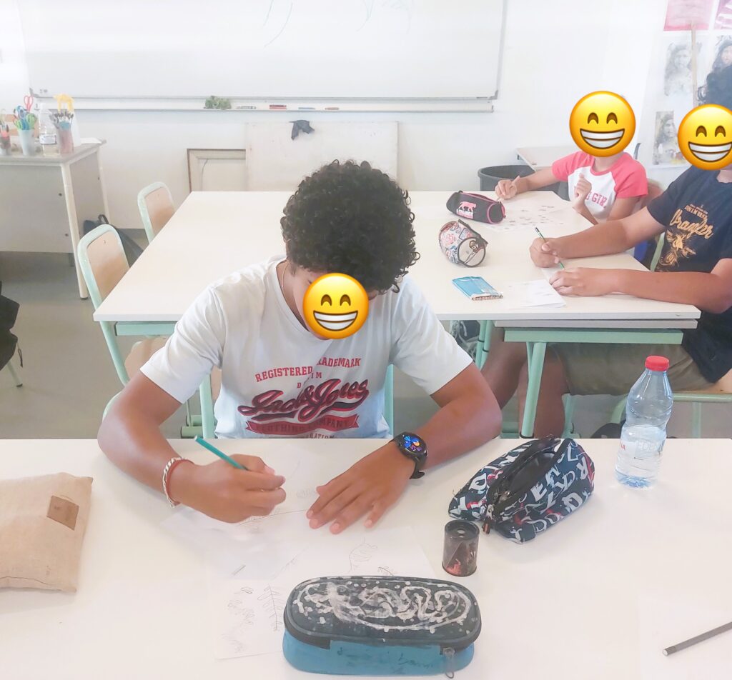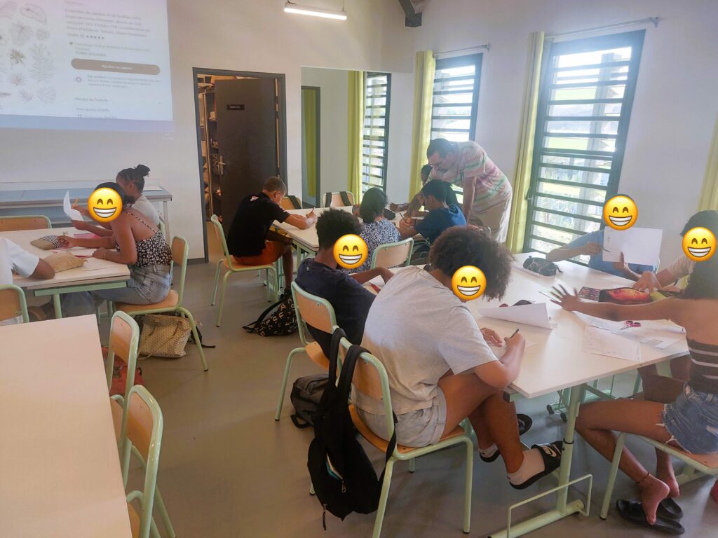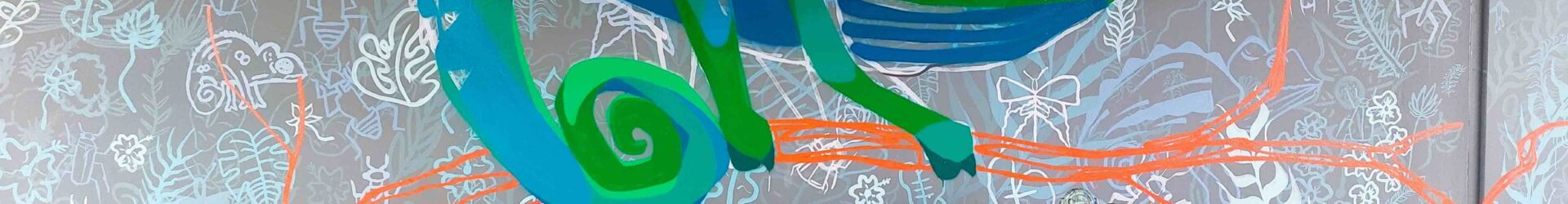 Le Mardi 2, lors d’une une séance « atelier » avec l’ensemble de la classe de 301 et l’artiste, le choix d’un thème autour de la protection animale et/ou environnementale a été établi. Les élèves ont ainsi décidé d’évoquer le caméléon, petit animal représentatif de la Réunion parois malmené par l’ultra urbanisation.