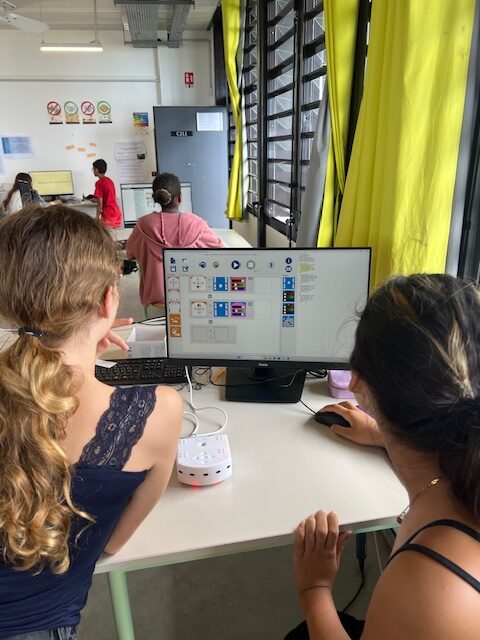 À travers la manipulation et la programmation du Thymio, les élèves apprennent à concevoir des séquences d’instructions, à comprendre la notion d’événement (un capteur déclenche une action) et à développer leur logique et leur créativité.