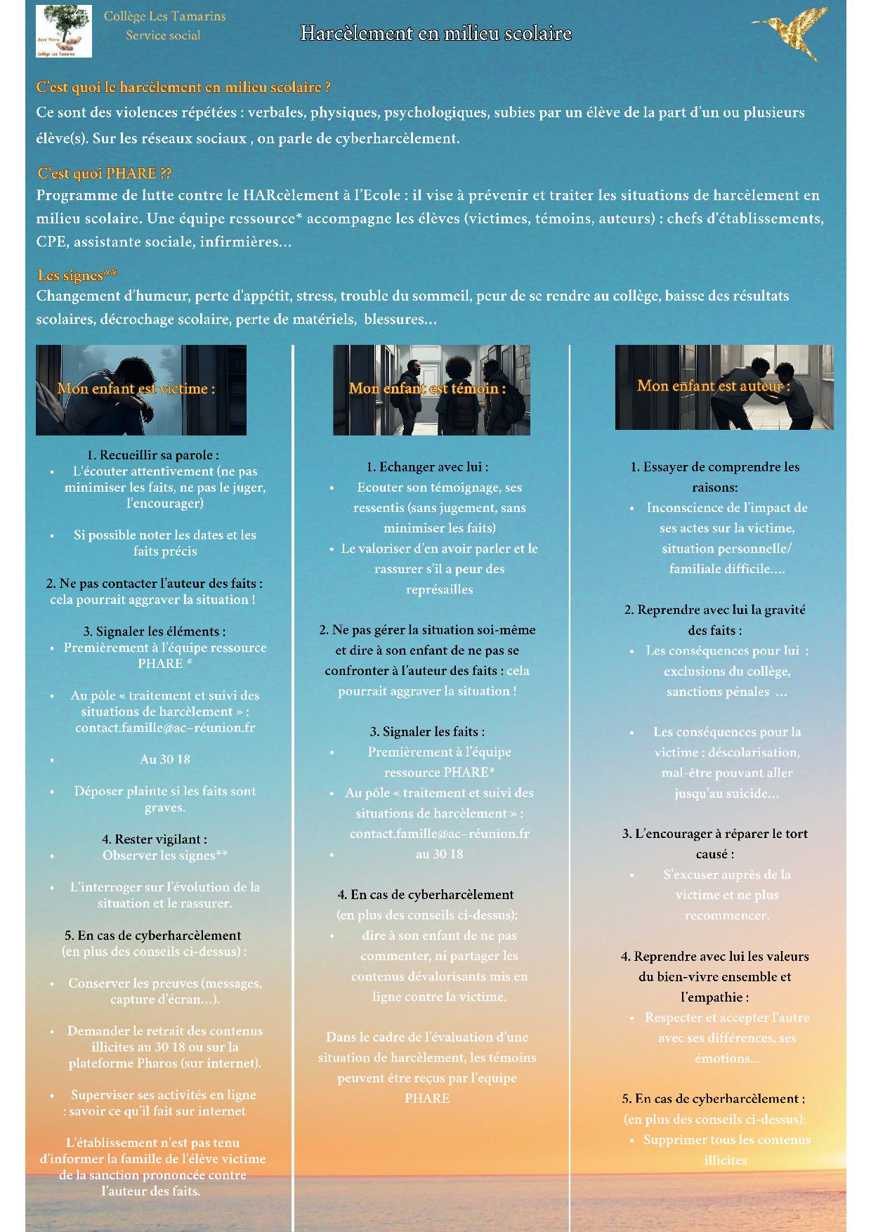 Flyer harcèlement en milieu scolaire à destination des parents