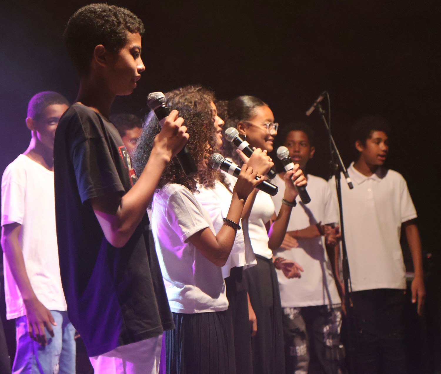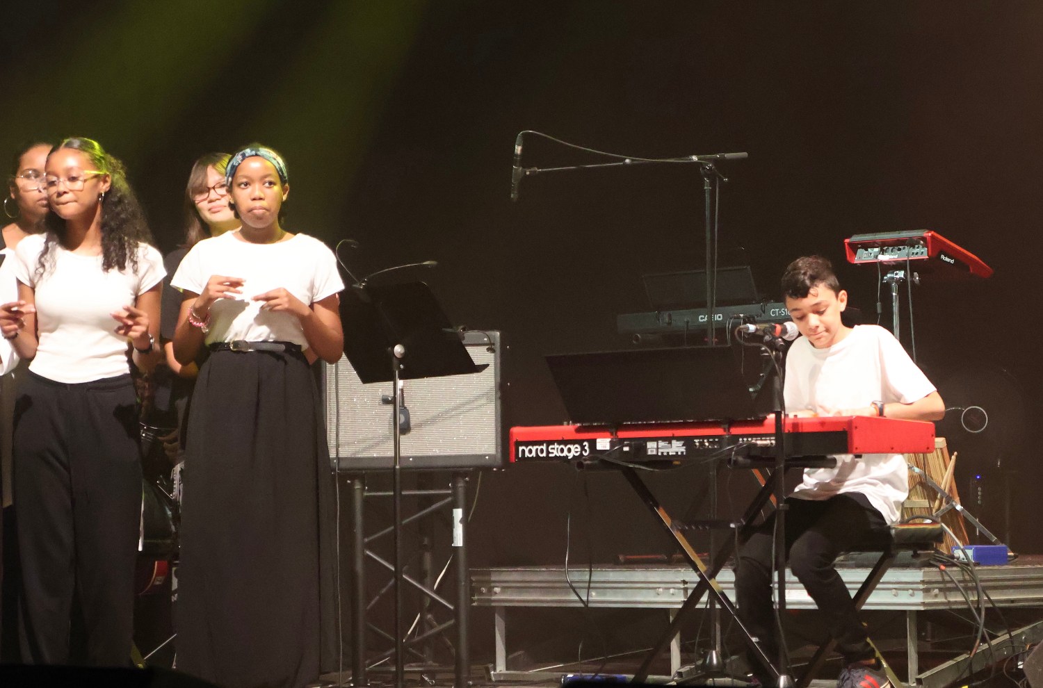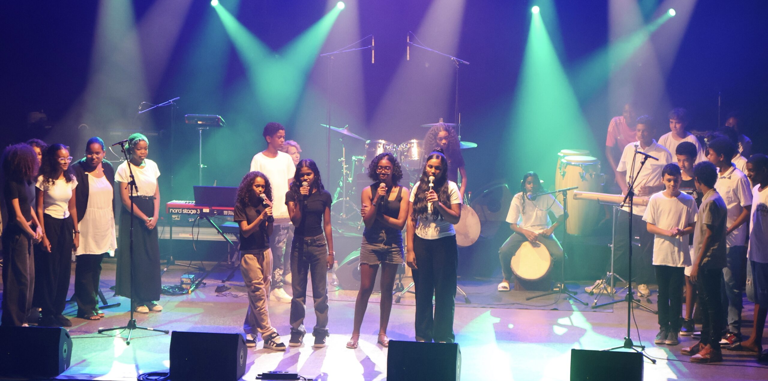 » Cette année, les élèves de la 4ème Hortensia ont fait « leurs valises »…pour un voyage en musique. Ils ont préparé un spectacle sur le thème du Voyage, présenté devant pas moins de 700 spectateurs au total ! Cinq concerts ont eu lieu au collège devant leurs camarades, professeurs, personnel et familles. Ils ont eu la chance de monter sur la scène du Kerveguen, à cette occasion ils ont eu l’opportunité de collaborer avec les lycéens de l’option musique du lycée Jean Joly de la Rivière Saint-Louis. Emmenez-moi, L’Anamour, Bahia, Clandestino, Hit the road Jack, Voyage Voyage, Fly me to the moon, Sateniclès et Banm kalou banm ont fait voyager le public sans bouger de son siège ! Une expérience artistique mettant en avant leur engagement, leur enthousiasme et le talent des jeunes artistes… »