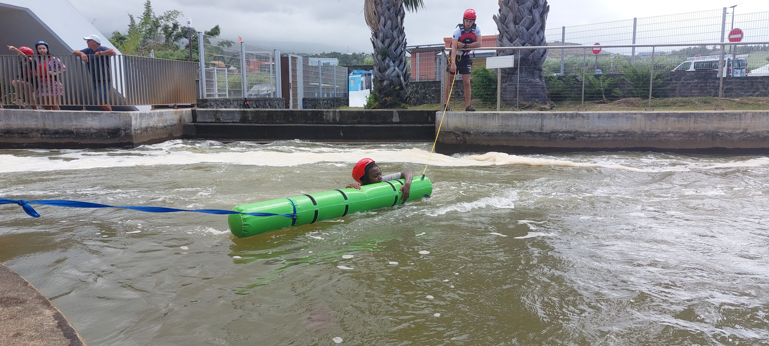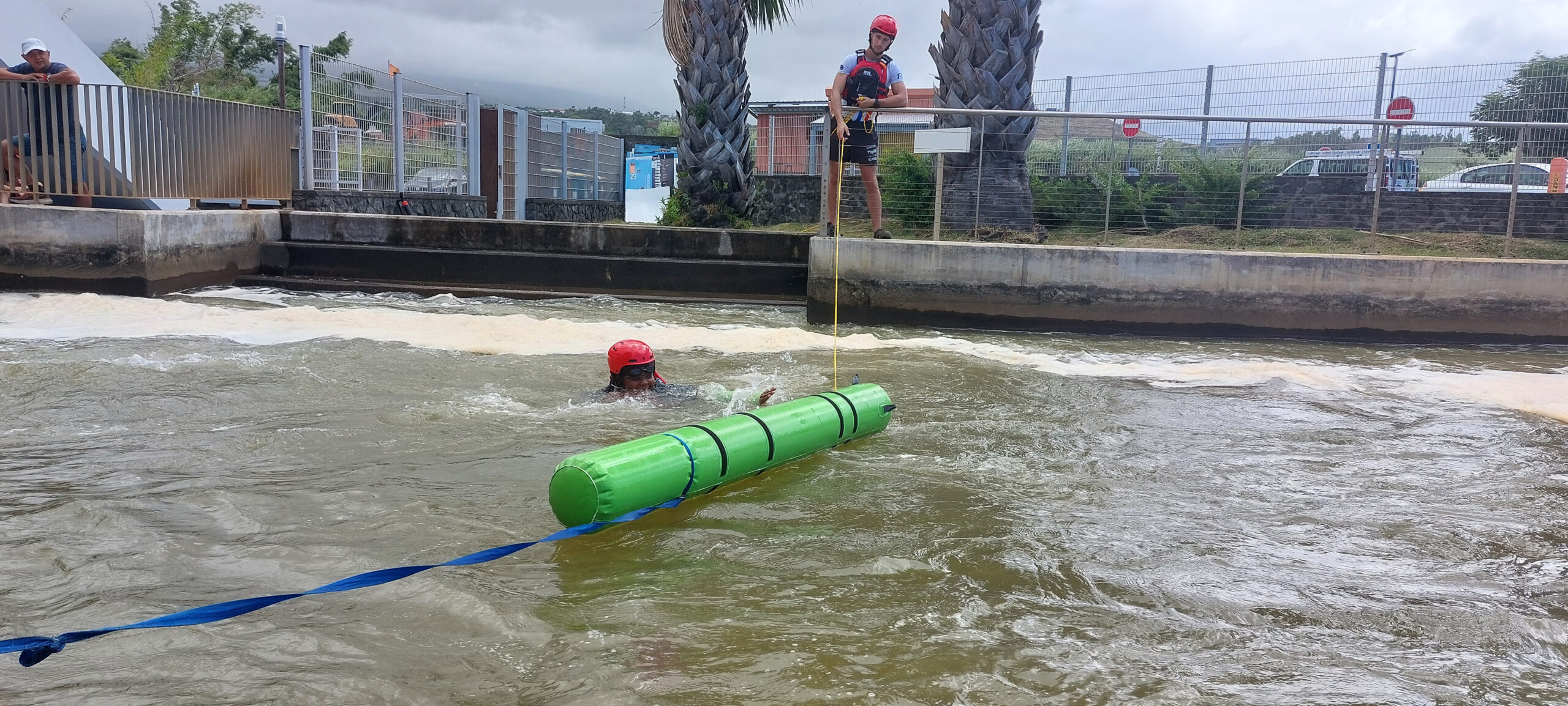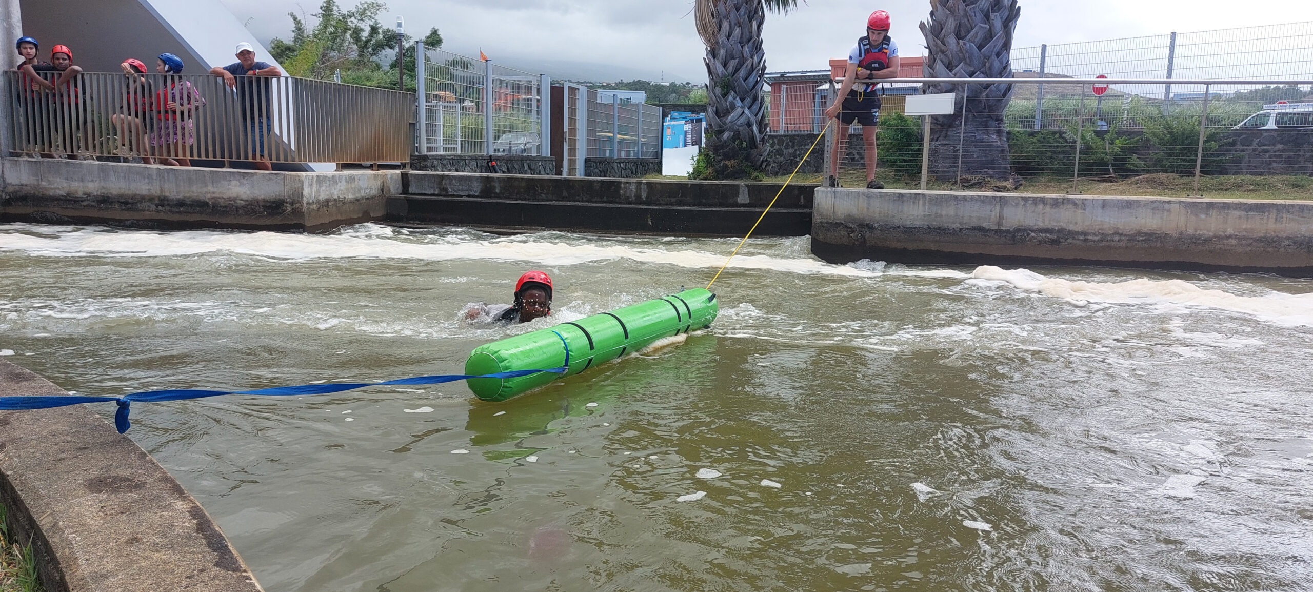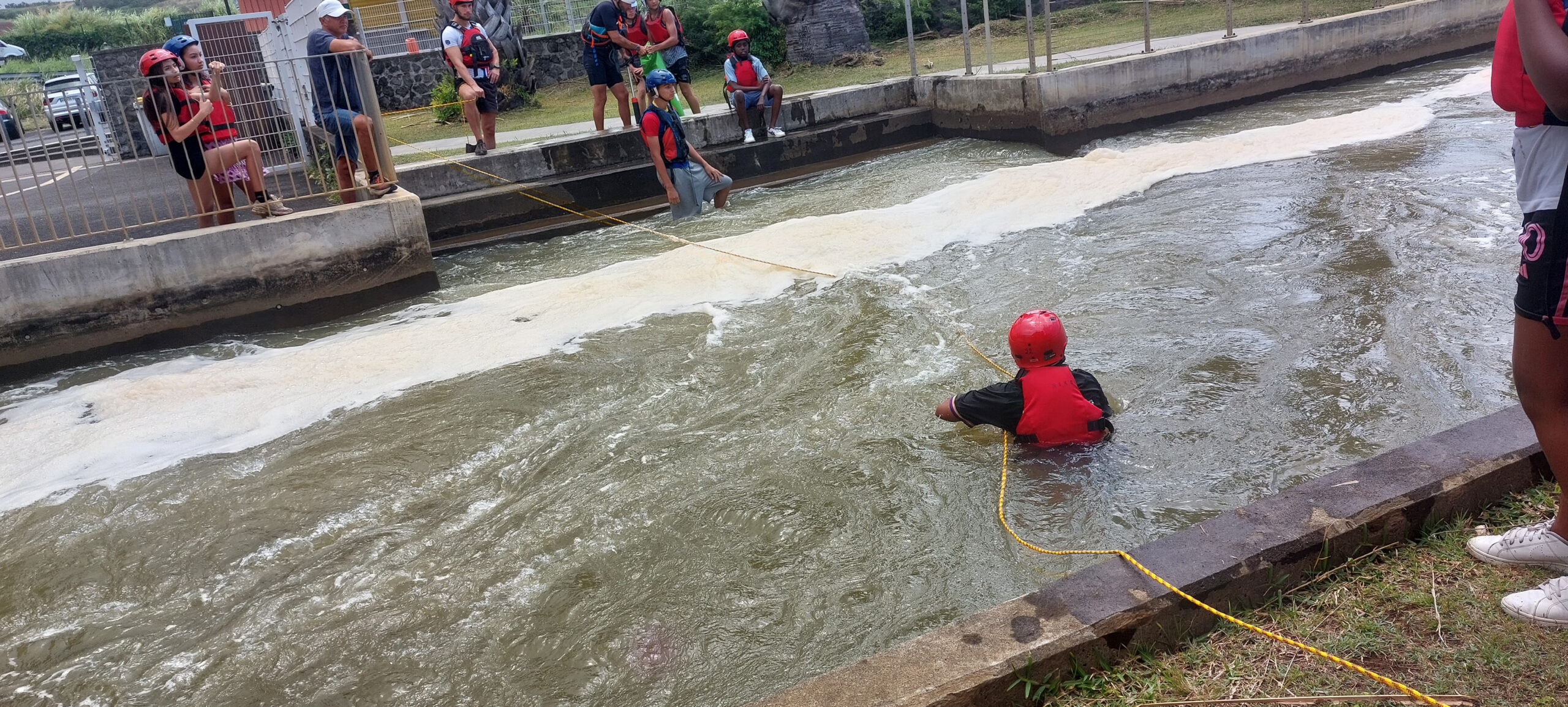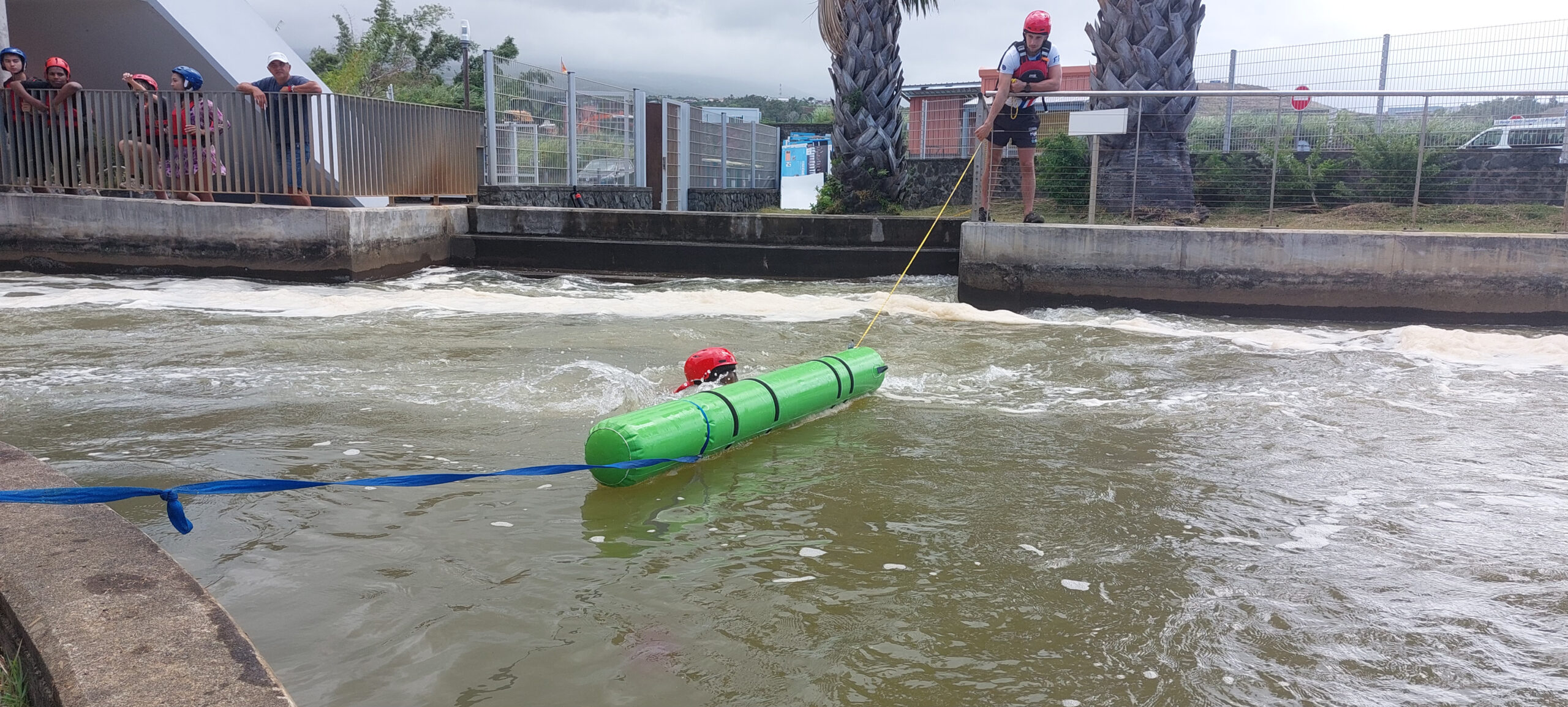 L’après-midi a été consacré à la mise en pratique des acquis, dans un cadre exceptionnel : le stade en eaux vives de Sainte-Suzanne. Les élèves ont pu s’exercer aux gestes de secours en milieu inondé, sous l’encadrement de professionnels. Au programme :