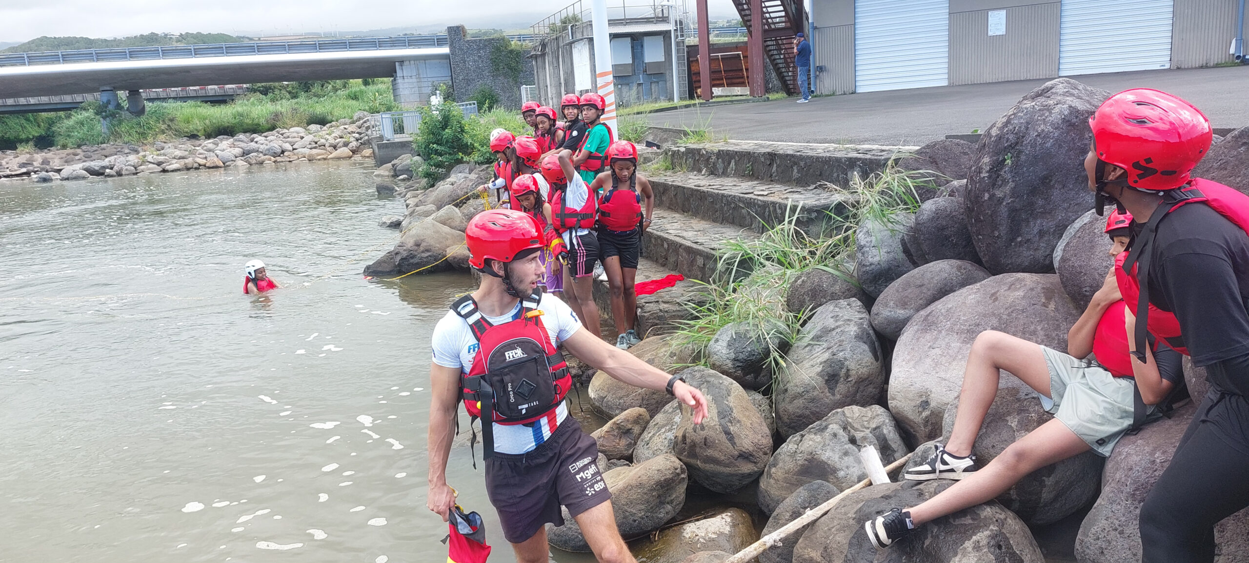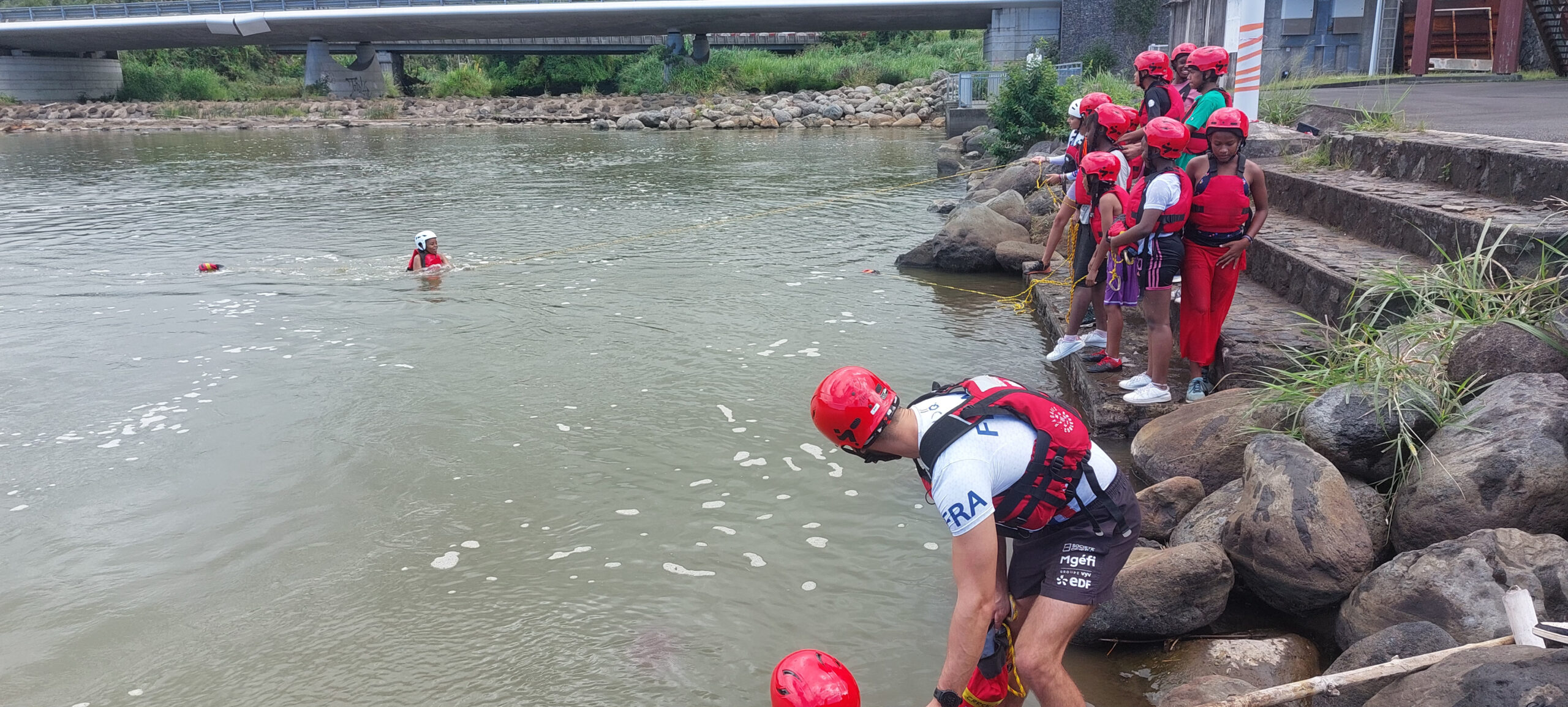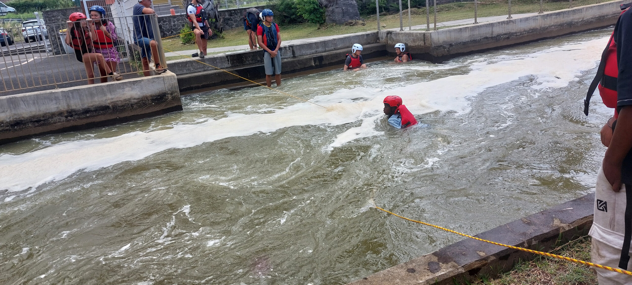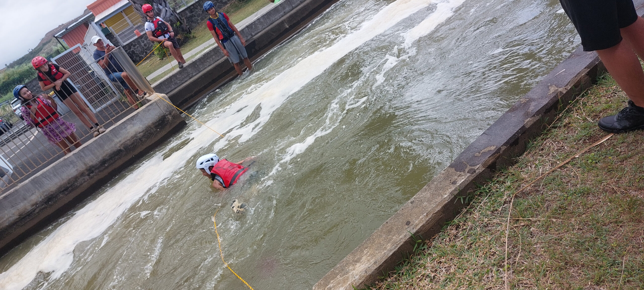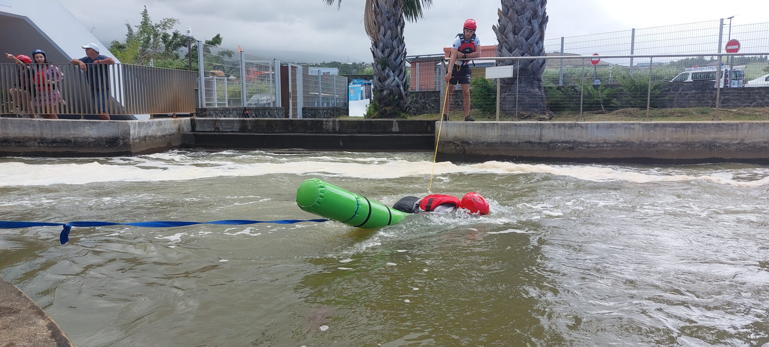 L’après-midi a été consacré à la mise en pratique des acquis, dans un cadre exceptionnel : le stade en eaux vives de Sainte-Suzanne. Les élèves ont pu s’exercer aux gestes de secours en milieu inondé, sous l’encadrement de professionnels. Au programme :