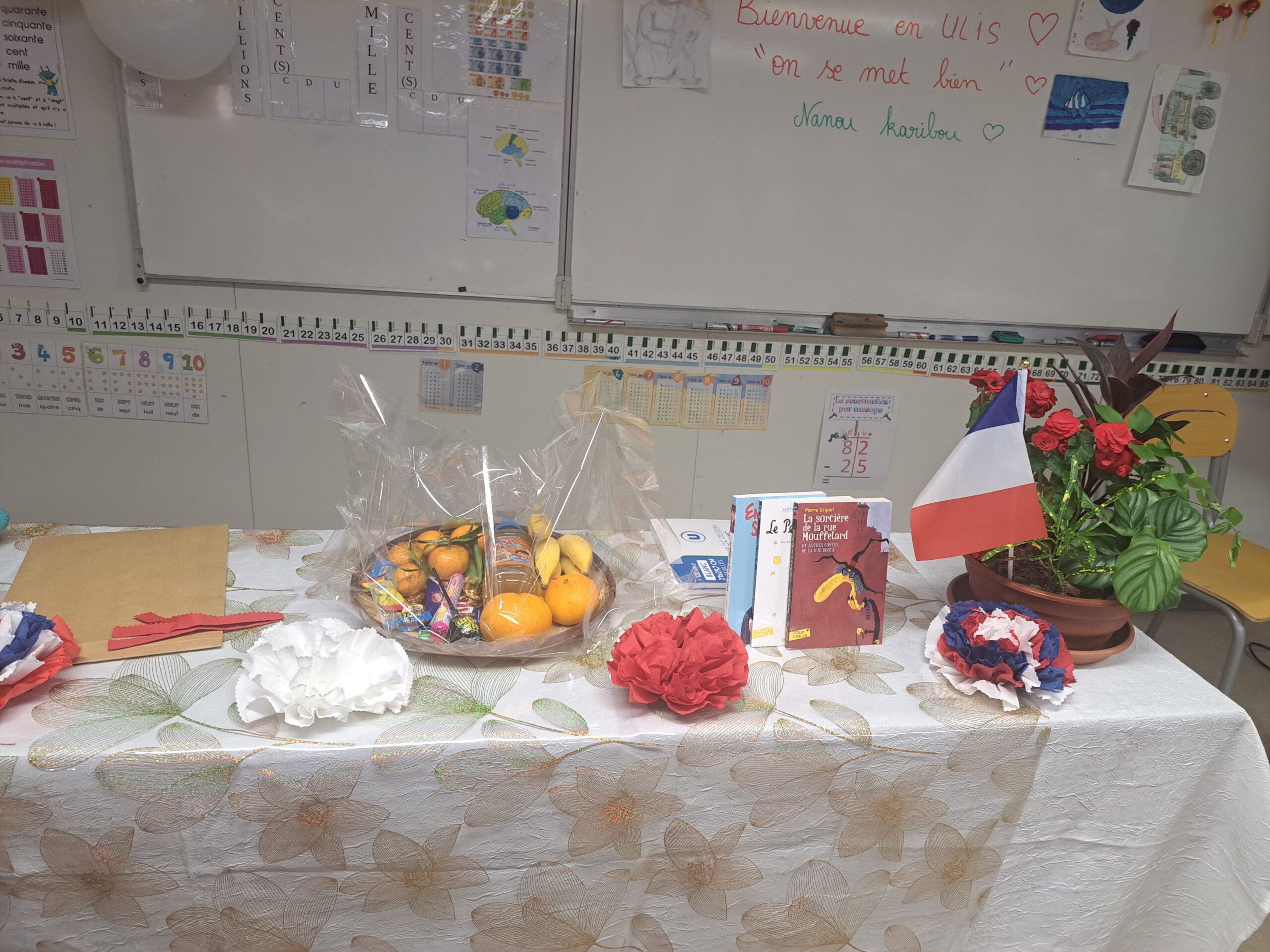 Pour clore, cette cérémonie, nous avons pu nous délecter de douceurs sucrées – salées variées (apportées par les parents et l’équipe ULIS): gâteau Maïs avec ou sans liqueur(un délice!), feuilletés, chips , samoussas maison de Audrey , notre AESH-co (Je valide l’ouverture d’une entreprise future bien entendu en dehors de tes heures de mission d’accompagnement)…le tout accompagné de boissons en abondance (café et thé offert par le collège).Tout un chacun a certainement pu trouvé son bonheur..