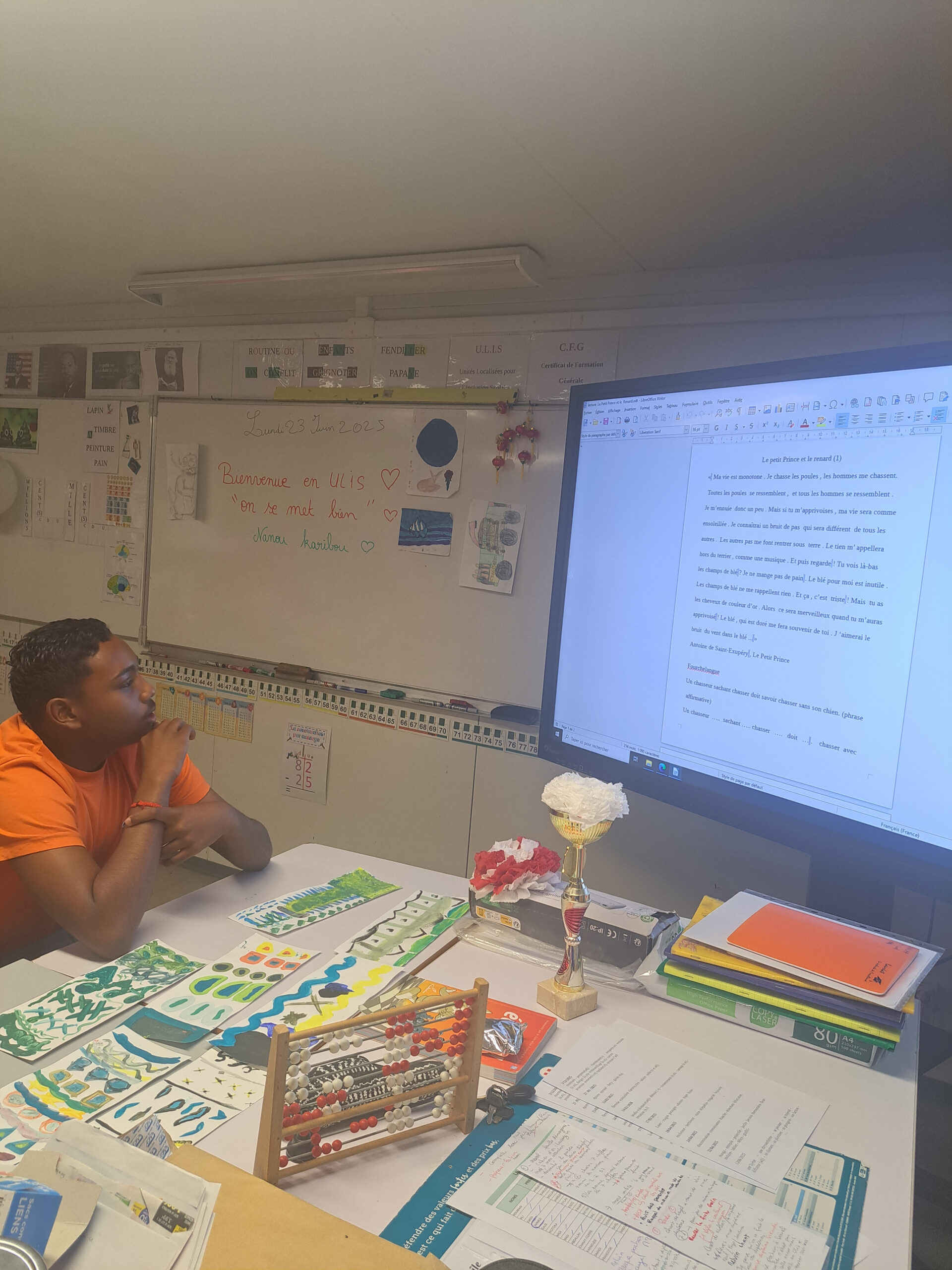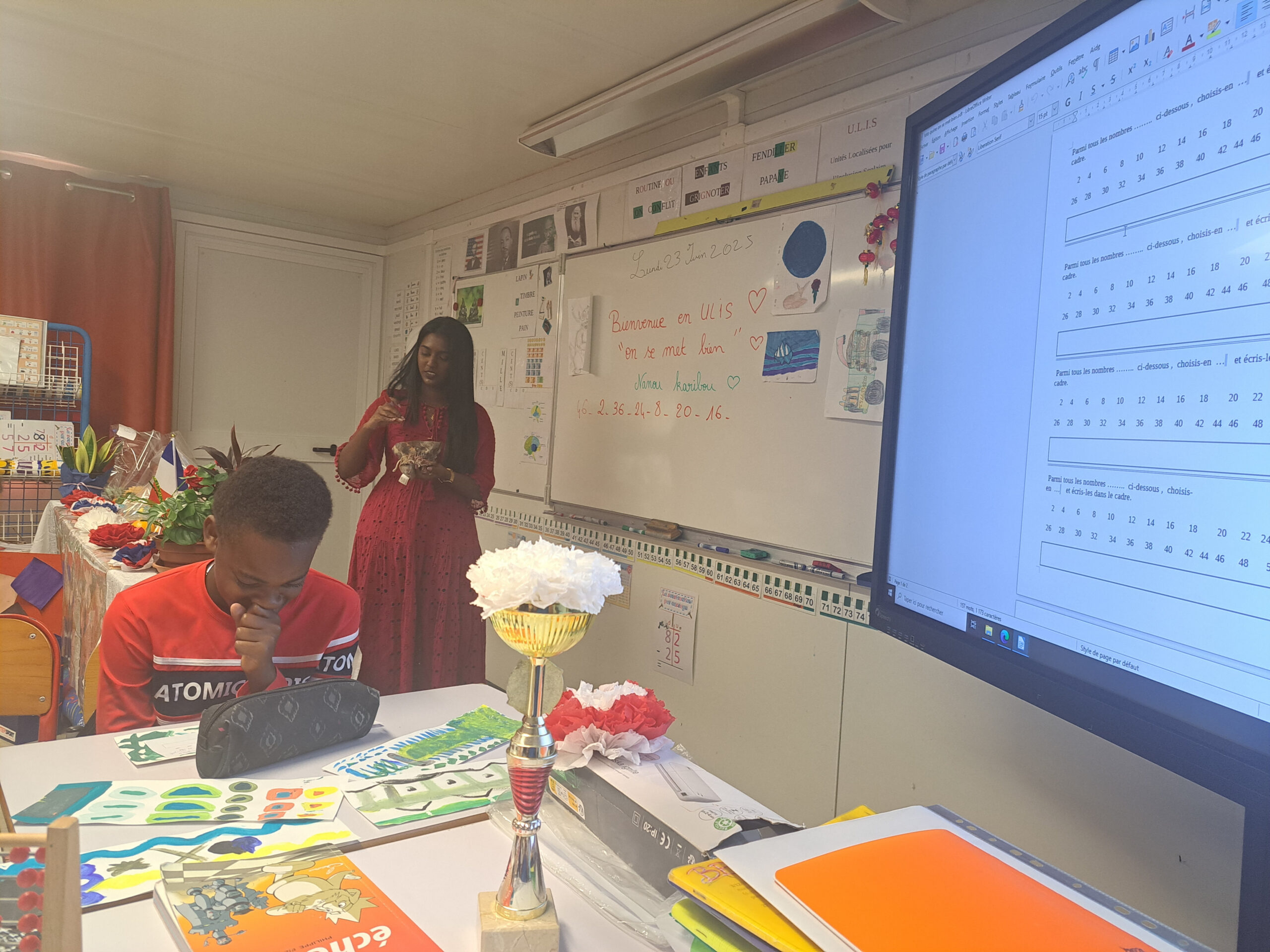 Le lundi 24 Juin, les parents du dispositif Ulis ont été conviés à se réunir dans le dispositif pour deux temps forts. En effet , en M3, en présence d ‘AESH , ils ont pu découvrir et participer à quelques activités proposés aux élèves dans leur apprentissage.