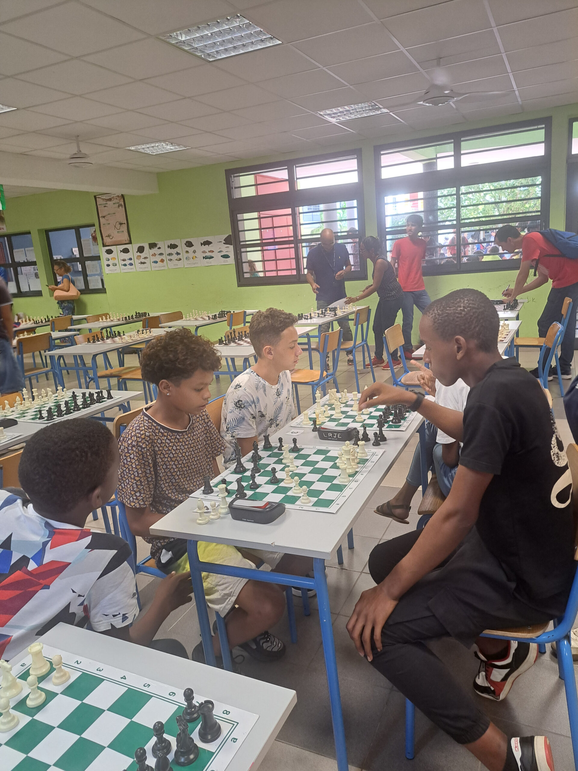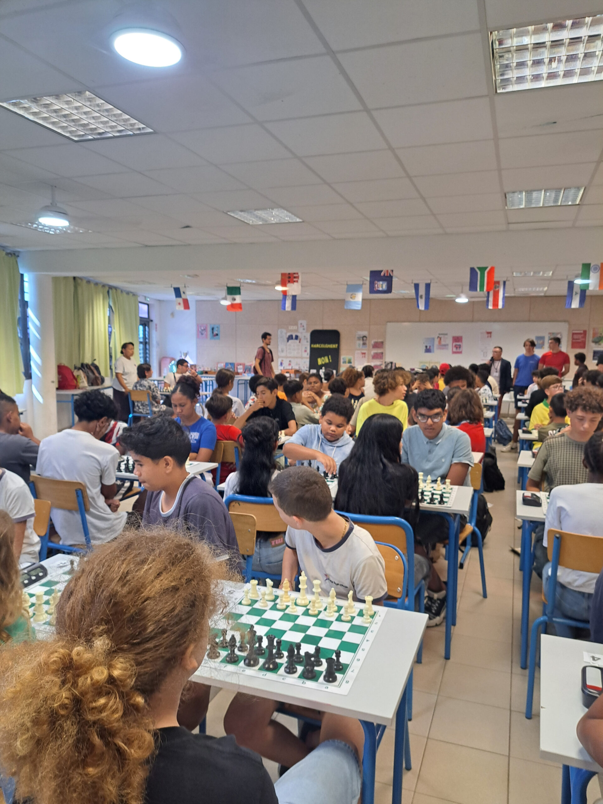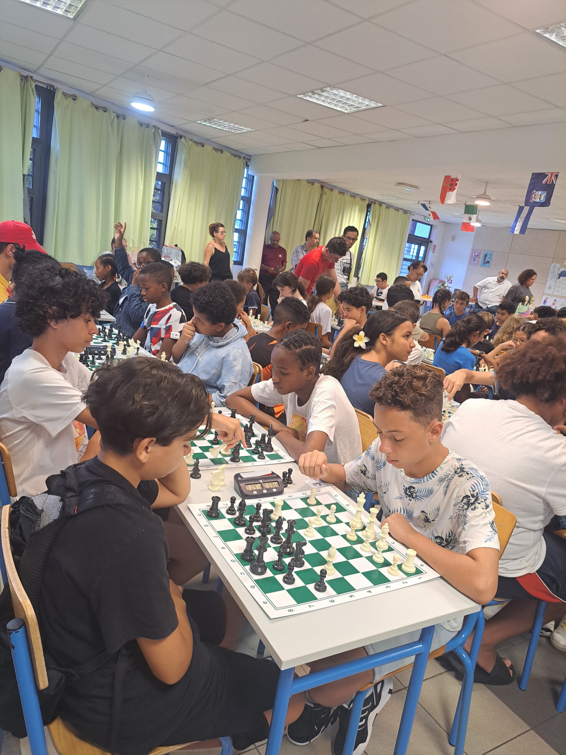 Sur le fil, nous sommes arrivés au tournoi. Pas le temps pour eux de se remettre de leurs émotions. Les compétiteurs enchaînent les rondes(6 au lieu de 7). Bien entendu, il y a eu une pause.Exploit qui mérite d’être souligné. La seconde ronde venait à peine de débuter que Aymane et Nathanaël ont laissé leur adversaire pantois en usant du « mat du berger ». C’est un coup d’une violence extrême pour les vaincus. Bravo les garçons!