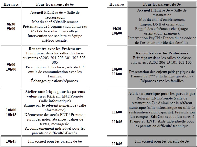 Réunion Parents-professeurs de 6ème et de 3ème du 6 septembre 2025
