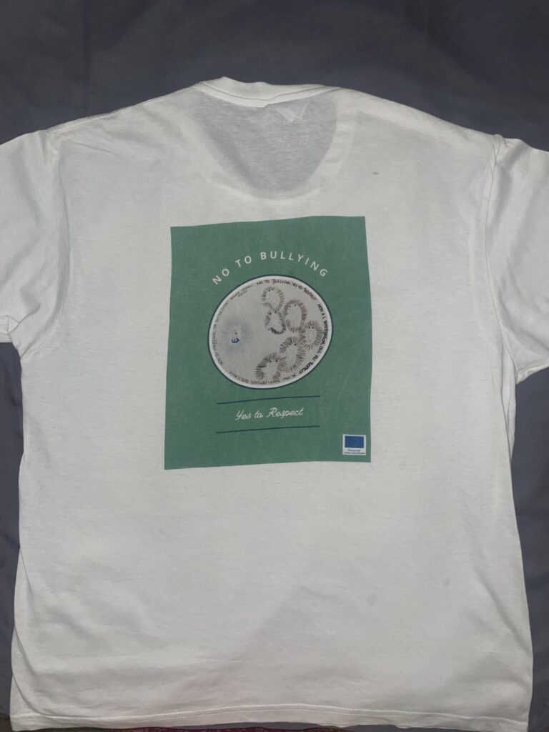 Finally, in Reunion island when the German students came in November 2024 we did a project for an anti-bullying campaign. We were in groups and each group did a drawing on anti-bullying. After this, we did a survey to select one drawing and the winning drawing was put on t-shirts. We got the t-shirts and gave them to our correspondents.