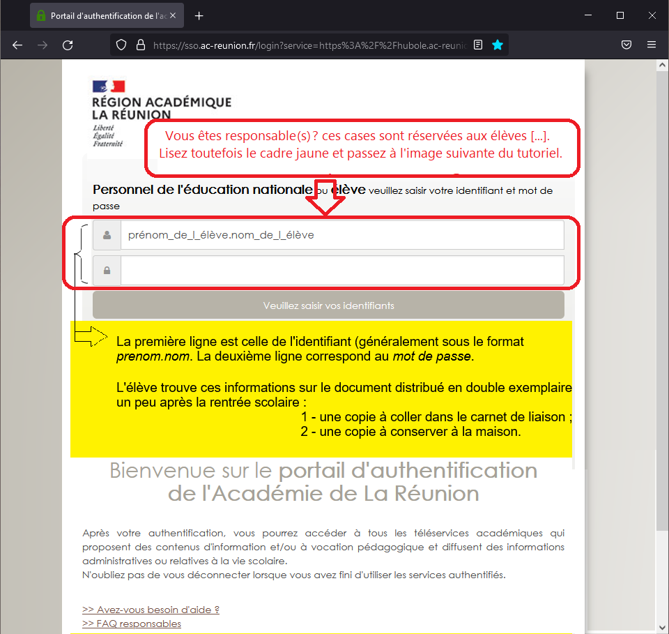 Aperçu de la connexion en utilisant Mozilla Firefox (le visuel peut légèrement différer, une mise à jour sera apportée prochainement)
